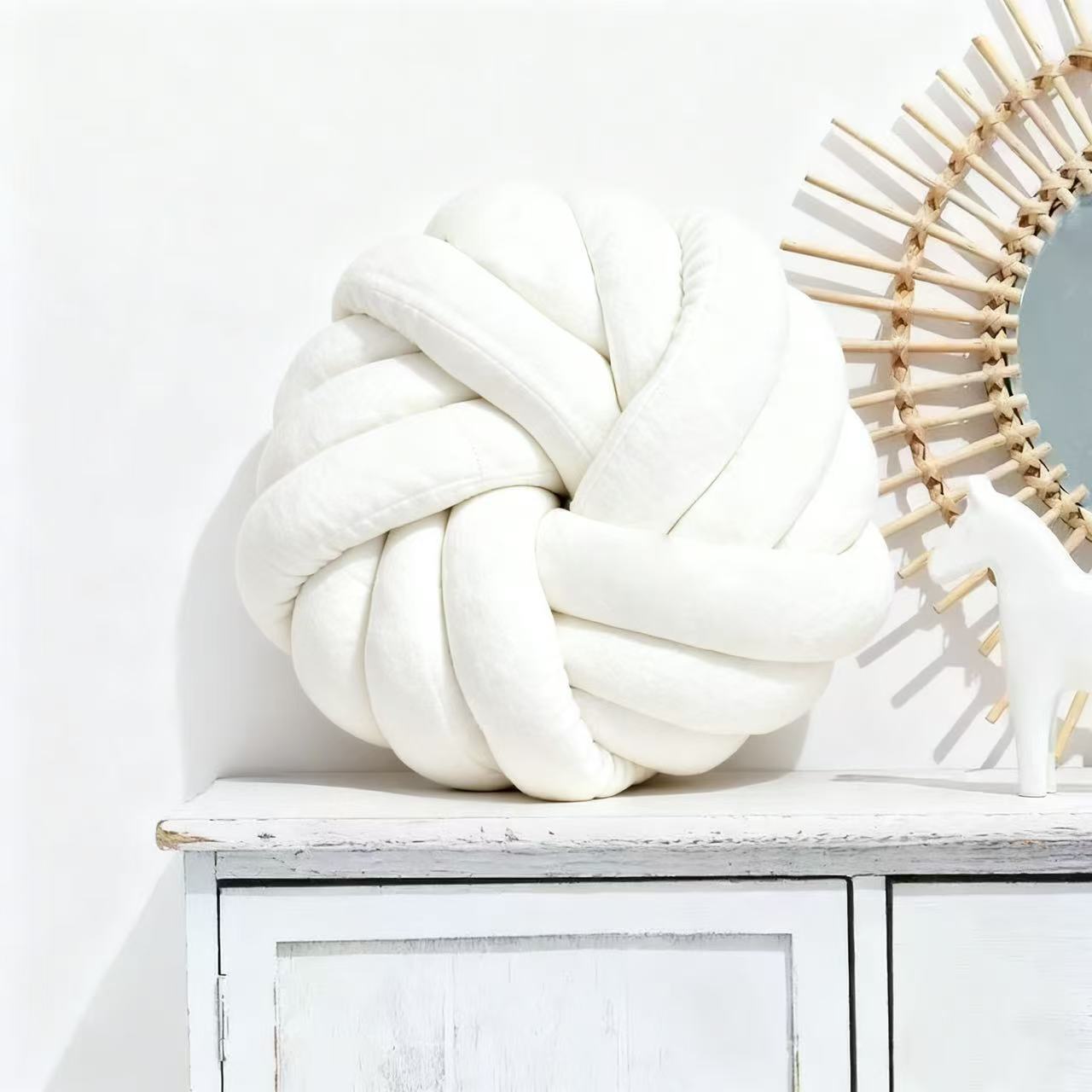 Cross-border handcrafted ins Nordic-style woven throw pillows, round three-strand rope knotted ball decorative sofa cushions, creative seat cushions