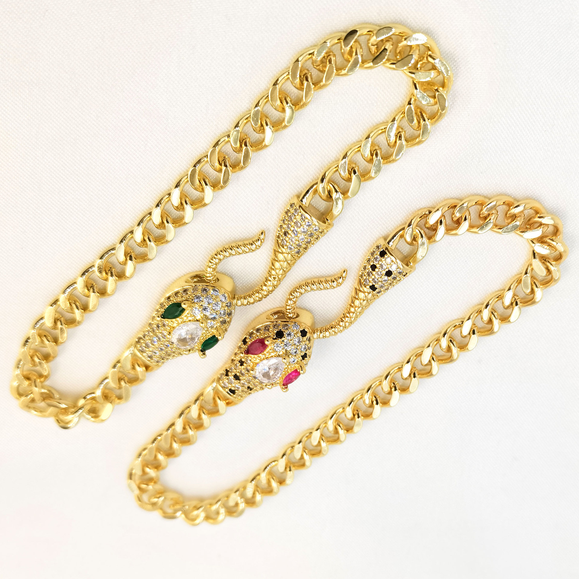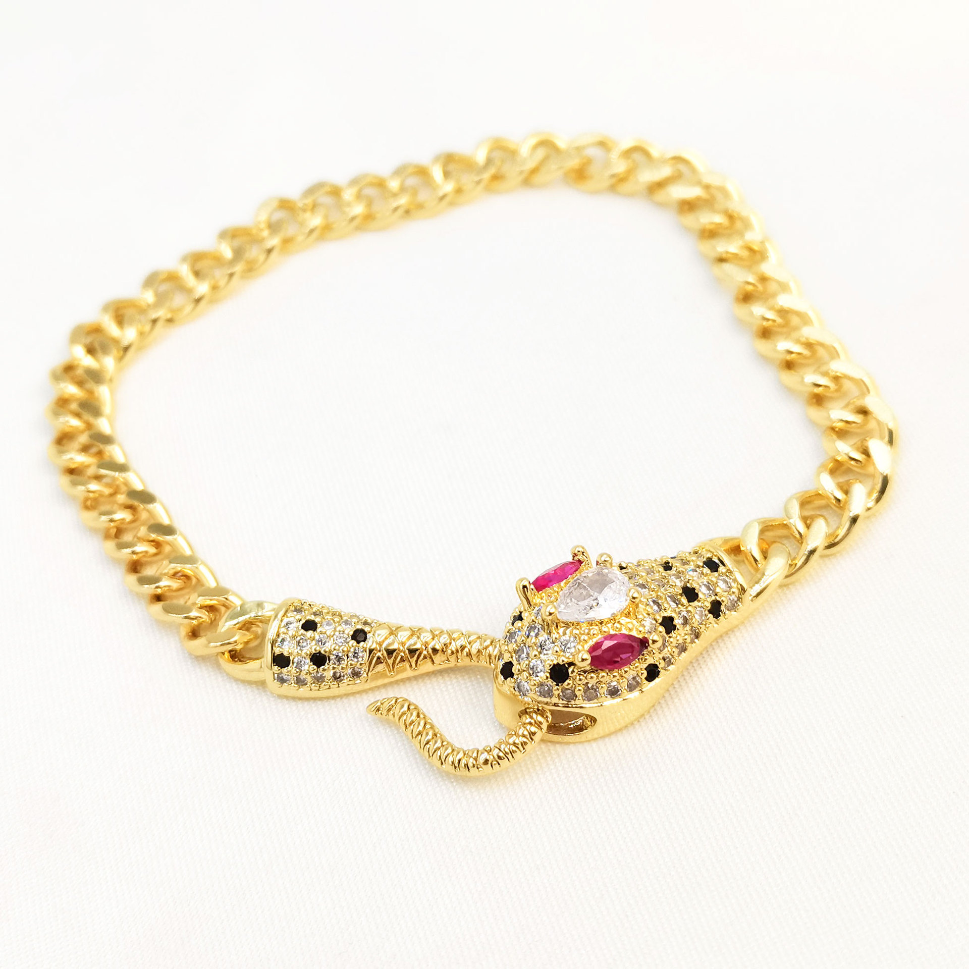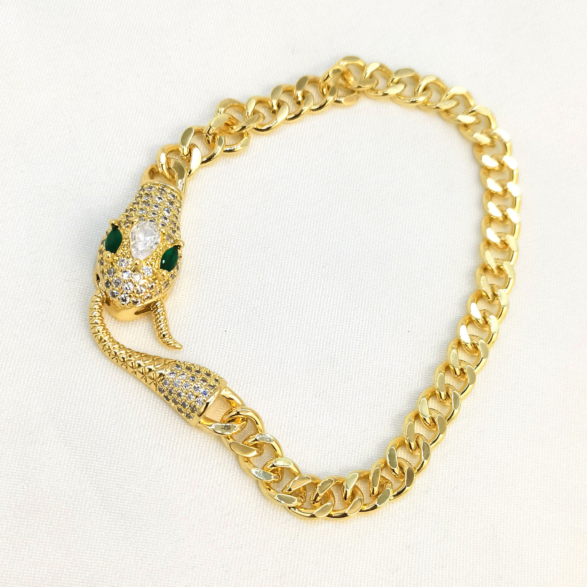 Cross-border hip-hop style snake-shaped bracelet with slightly inlaid zircon Cuban chain, a fashionable, niche and high-end women's bracelet