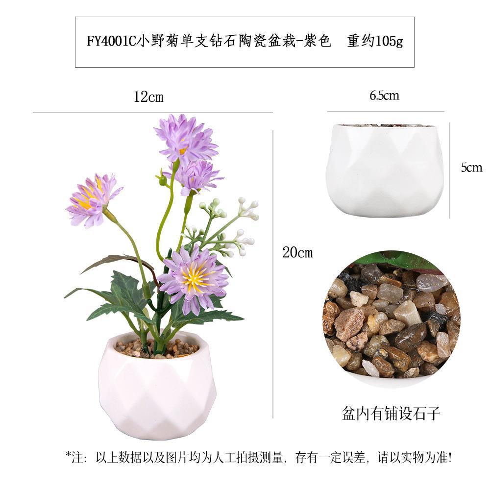 FY4001C- Single Diamond Ceramic potted plant of Purple wild chrysanthemum