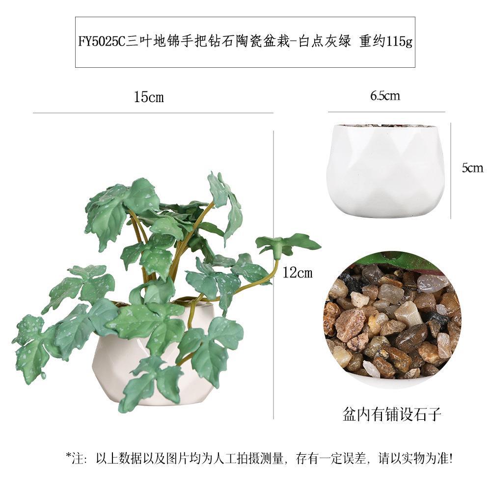 FY5025C- White Dot Gray-green three-leaf ground brocade handle Diamond Ceramic potted plant