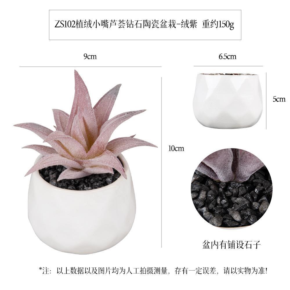 ZS102- Velvet Purple Small Mouth Aloe Vera Succulent Diamond Ceramic Potted Plant