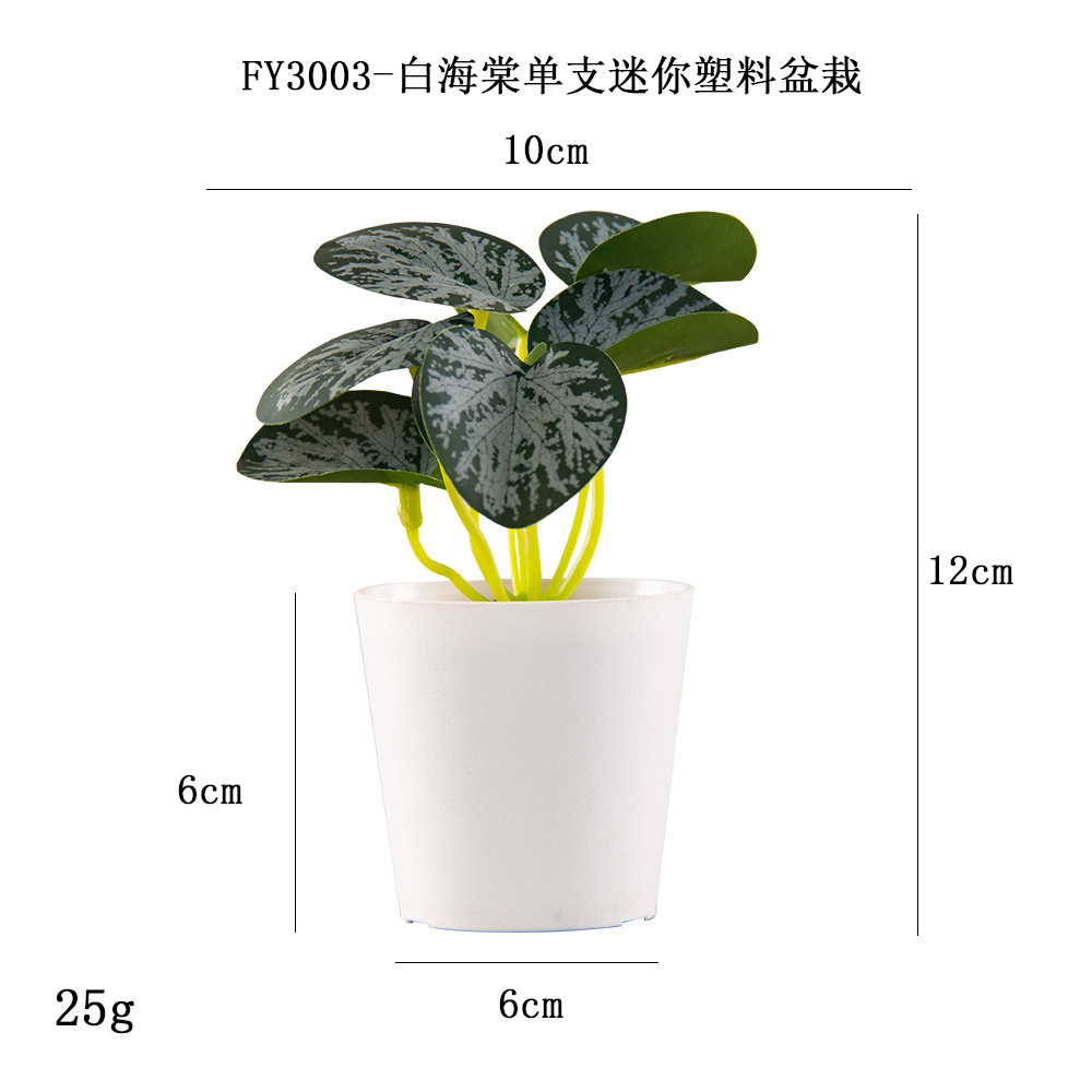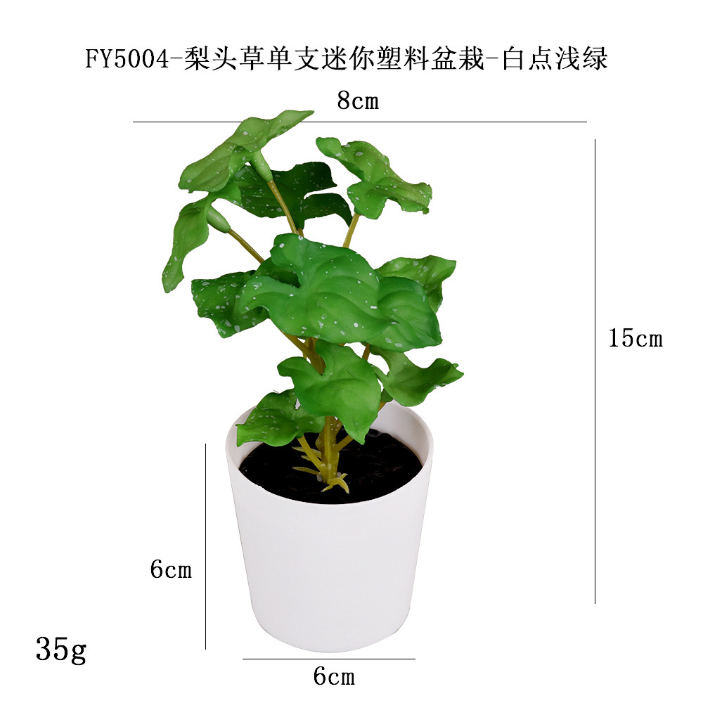 FY5005- Single mini plastic potted plant of white Dot light green three-leaf ground brocade