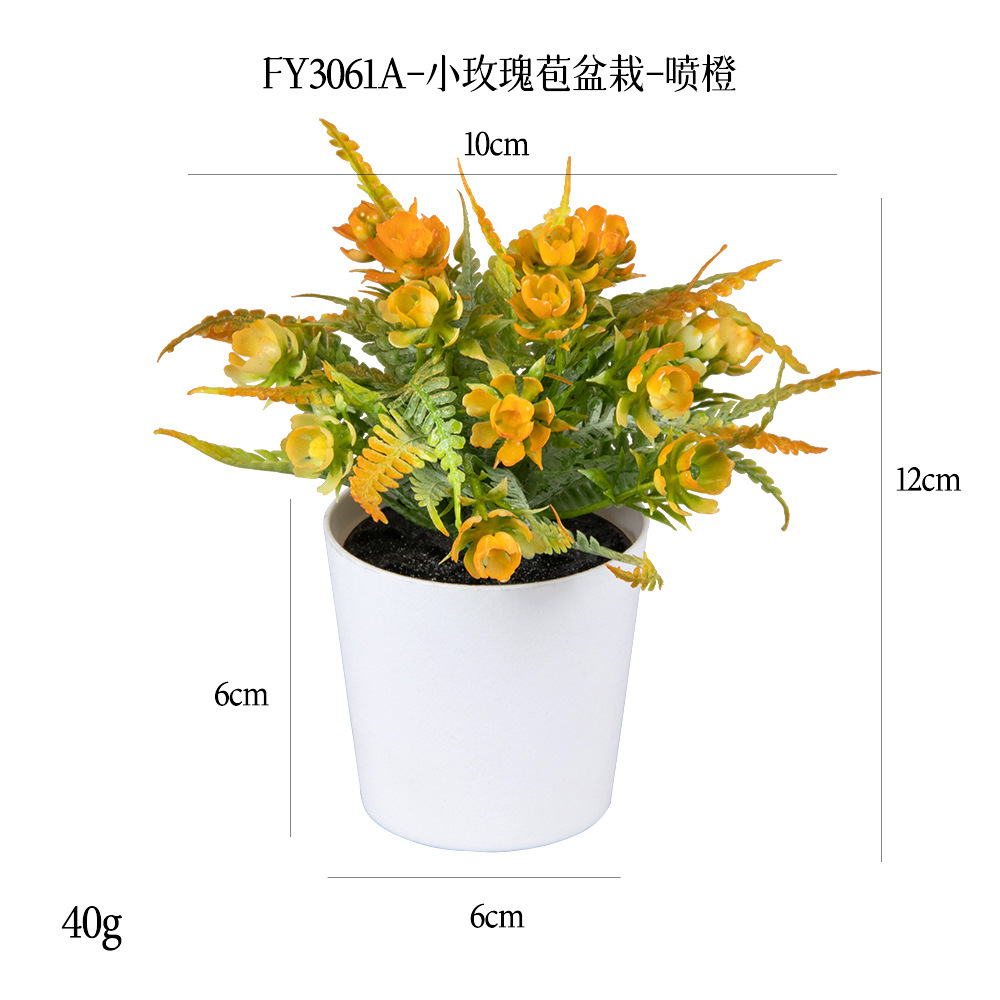 FY3061A- Mini Plastic potted plant with yellow rose buds sprayed