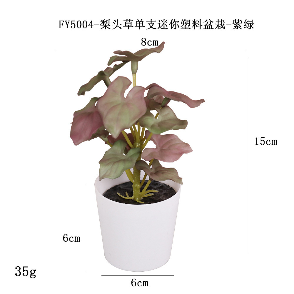 FY5009- Purple Green Field Melon Leaf Single Mini Plastic Potted Plant