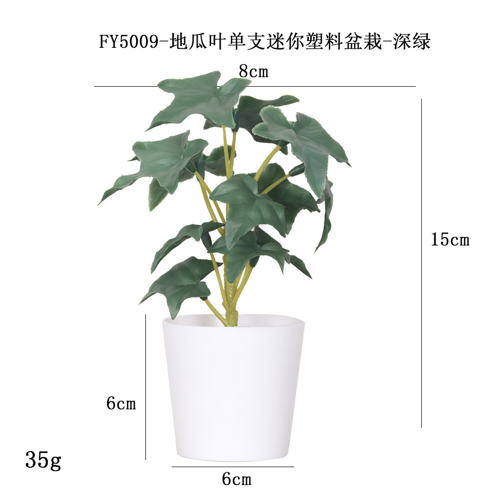 FY5009- Deep Green Field Melon Leaf Single Mini Plastic Potted Plant