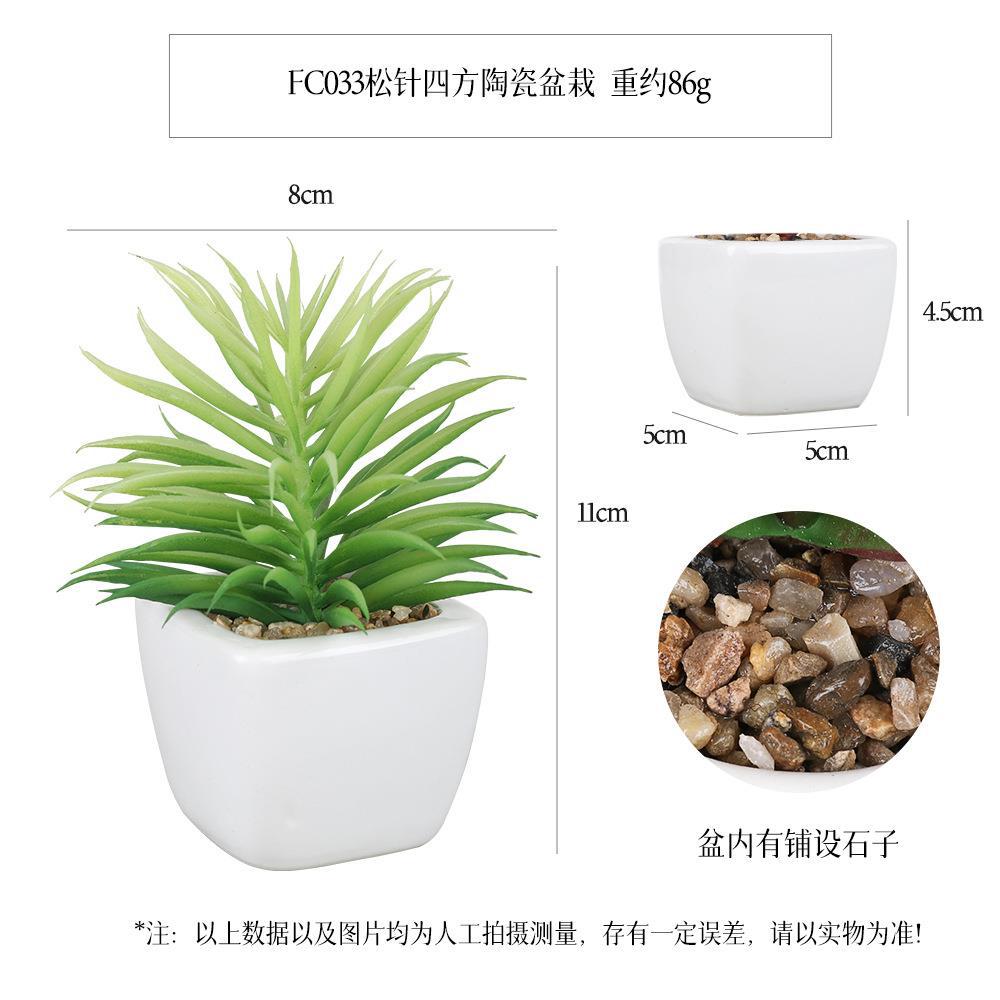 FY5004D- Single square ceramic potted plant of white dot light green pear head grass