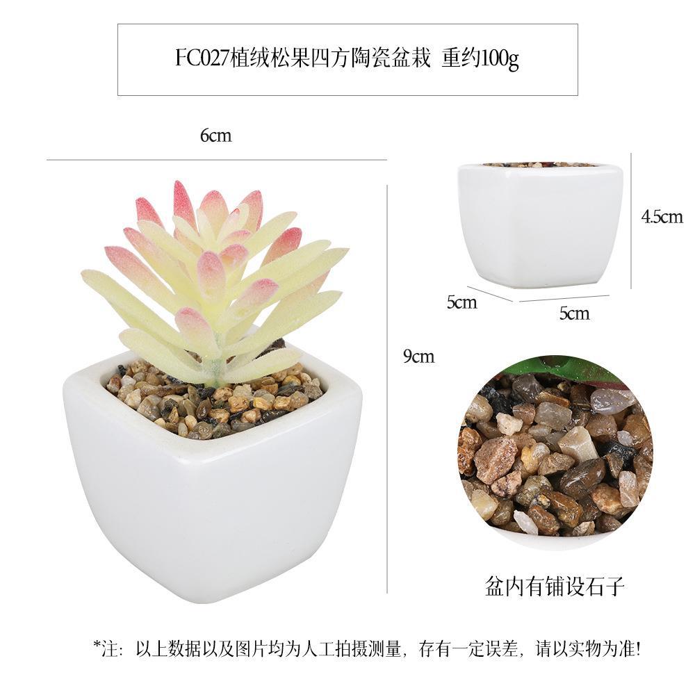 FC013- Flocked Small Gemstone Flower Square Ceramic potted plant