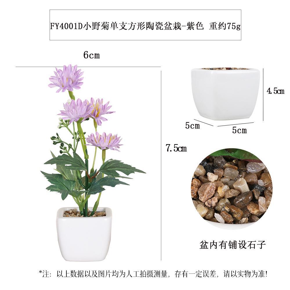 FY4001D- Single square ceramic potted plant of purple wild chrysanthemum