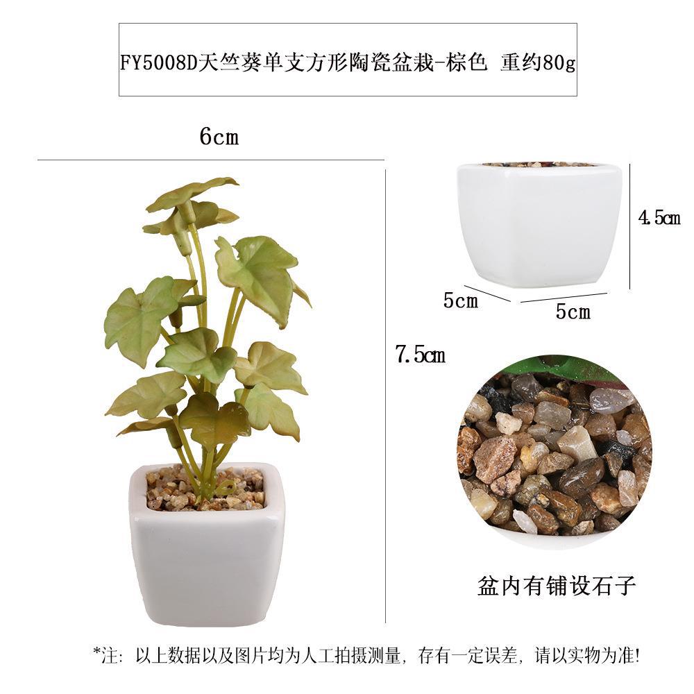 FY5005D- White Dot Gray-green three-leaf ground Brocade Single Square Ceramic potted plant