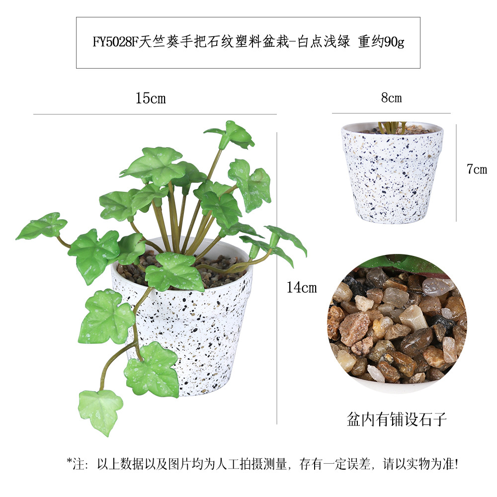 FY5029F- White Dot Grey Green Space Melon Leaf Handle stone-patterned Plastic potted plant