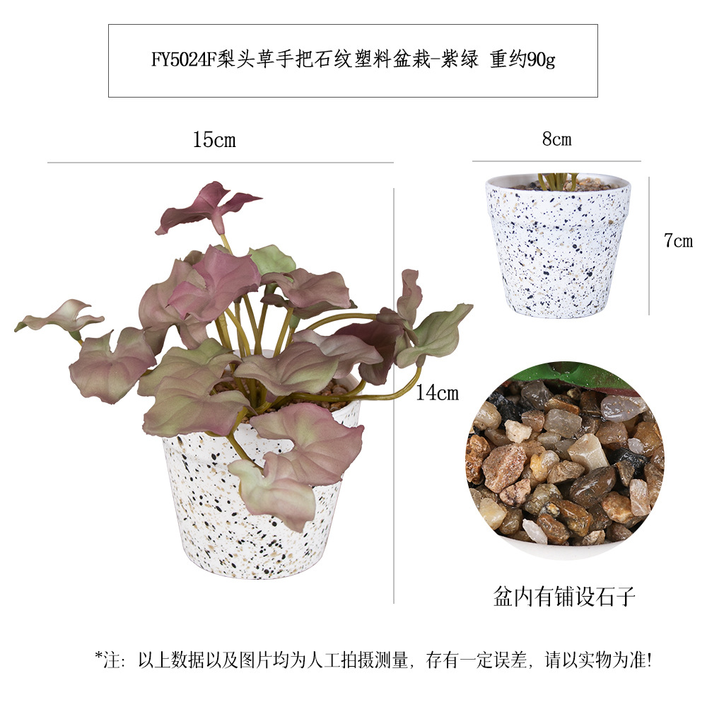 FY5025F- Purple-green three-leaf ground brocade handle stone-patterned plastic potted plant