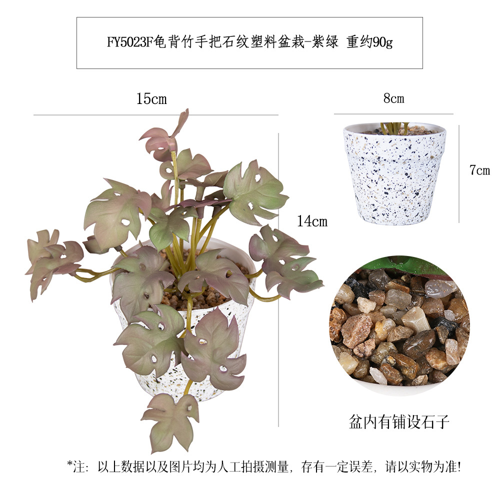 FY5029F- Purple Green Land Melon Leaf Handle Stone-patterned Plastic Potted Plant