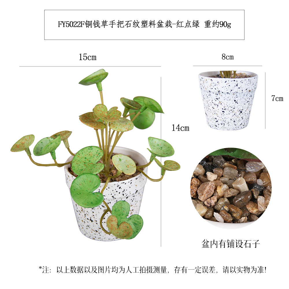 FY5022F- White Dot Gray-green Pennywort handle stone-patterned plastic potted plant