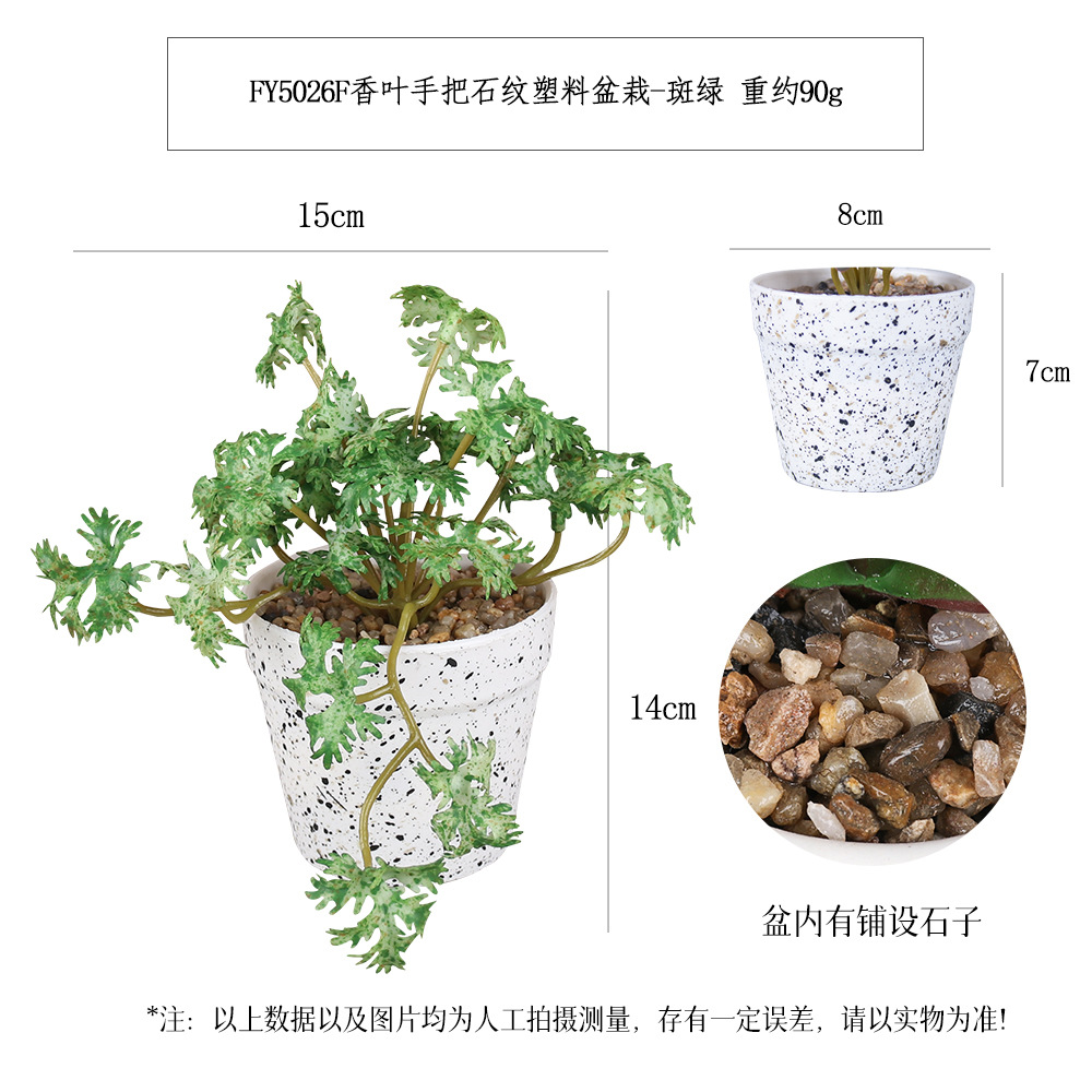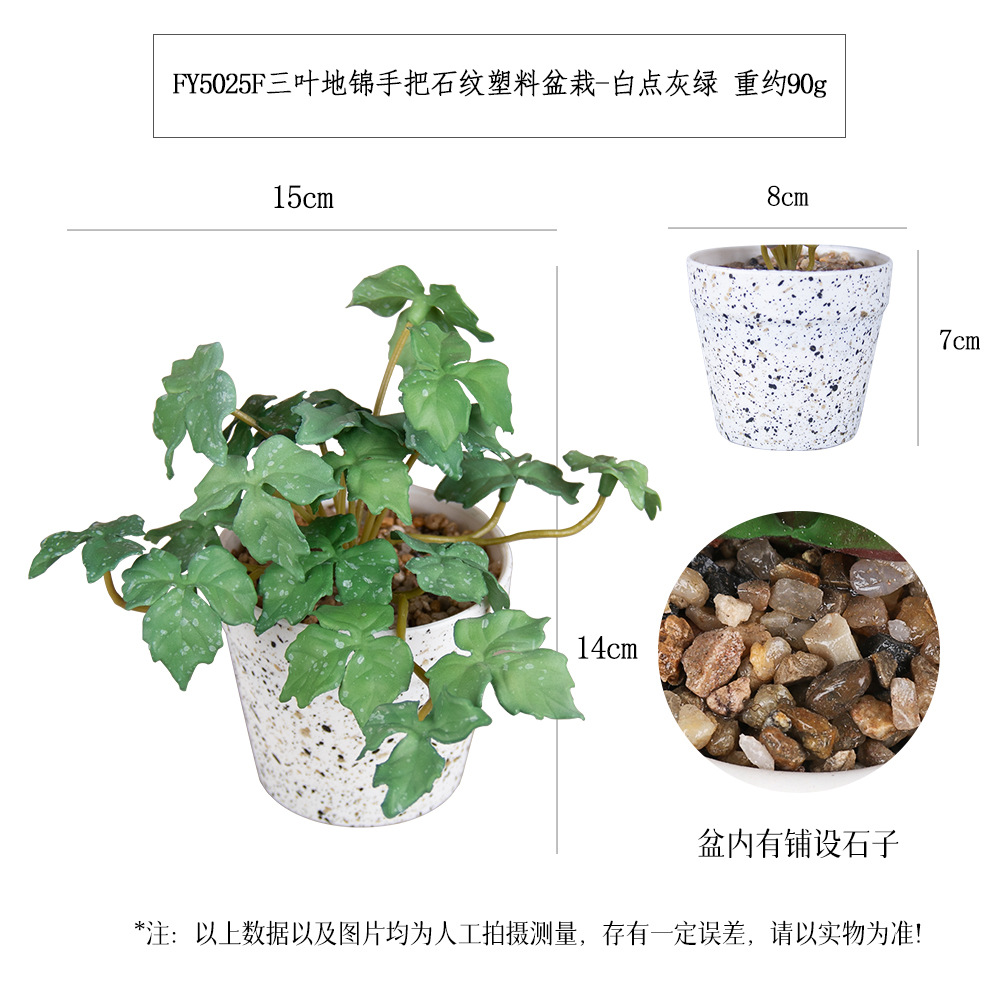 FY5025F- White Dot Gray-green three-leaf ground brocade handle stone-patterned plastic potted plant