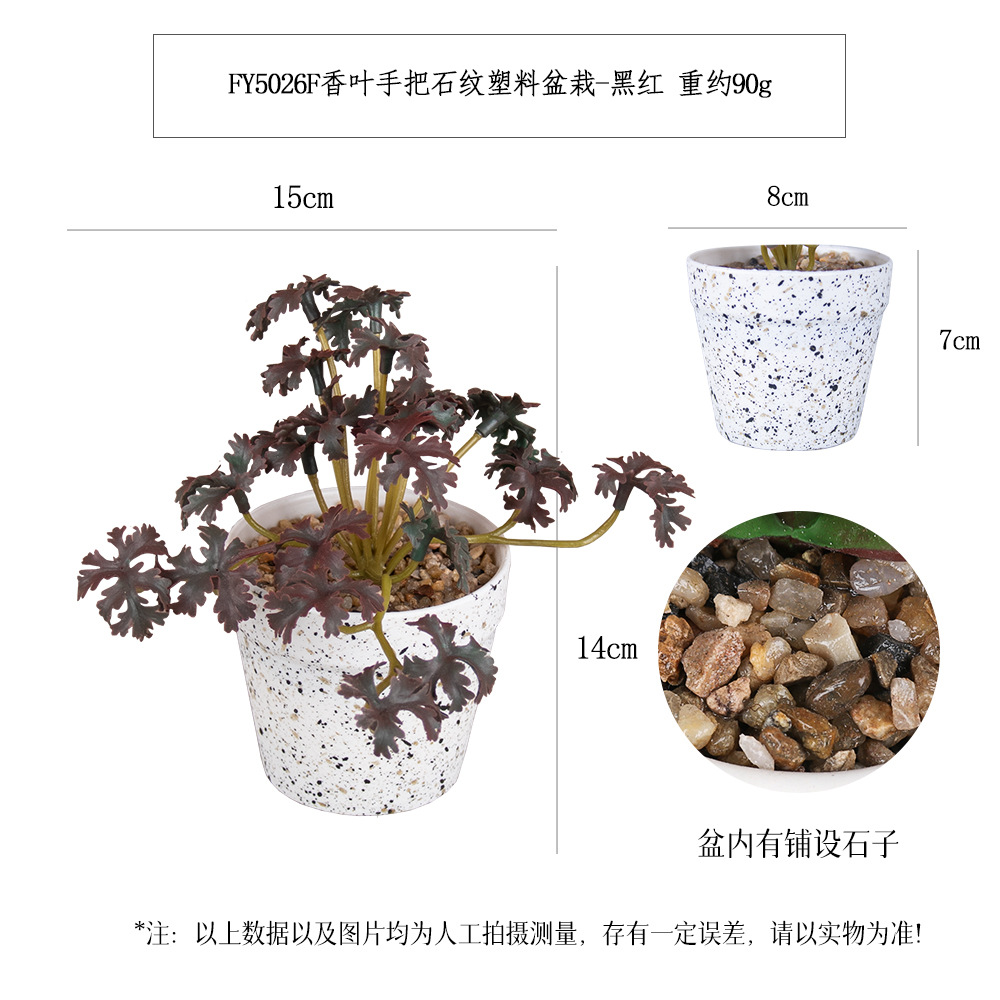 FY5026F- Black and Red fragrant leaf handle stone-patterned plastic potted plant