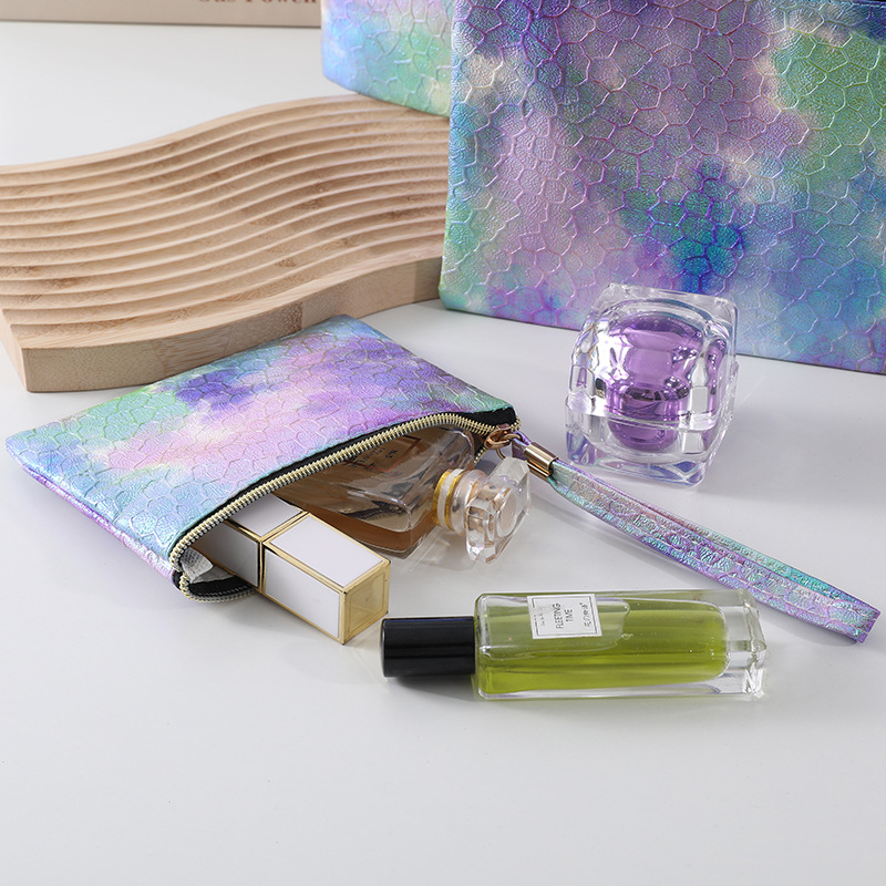 Cross-border in-stock gradient women's iriered laser makeup bag, portable travel tattoo and nail art storage toiletry bag