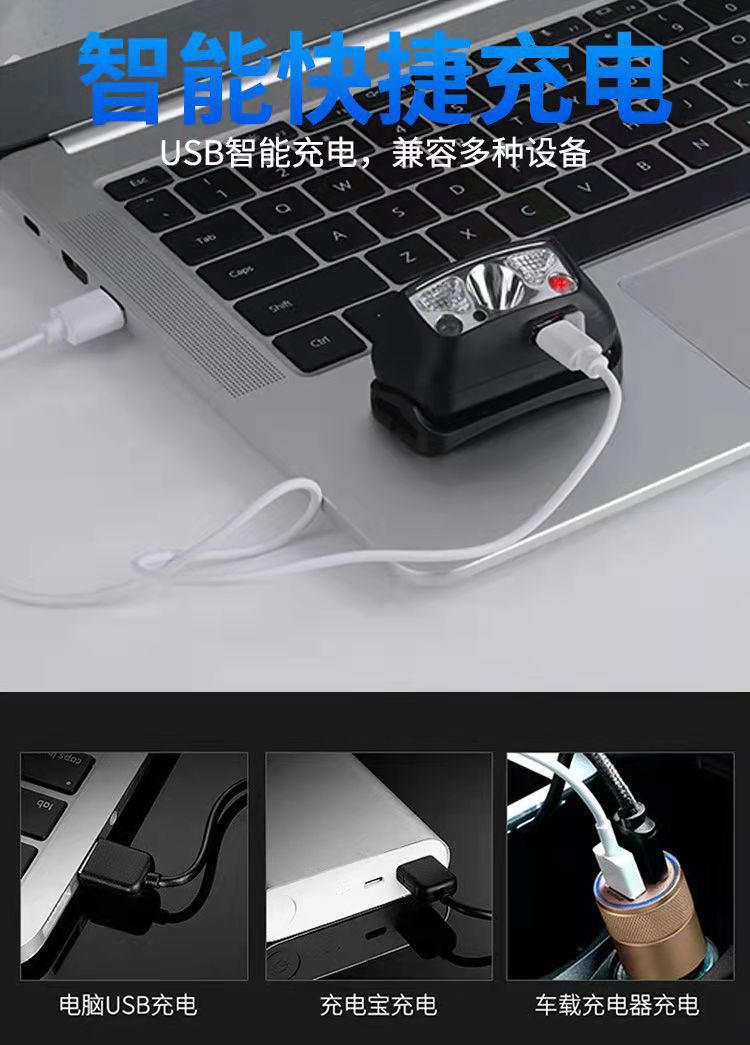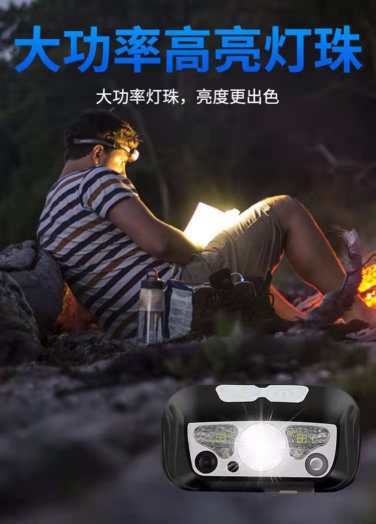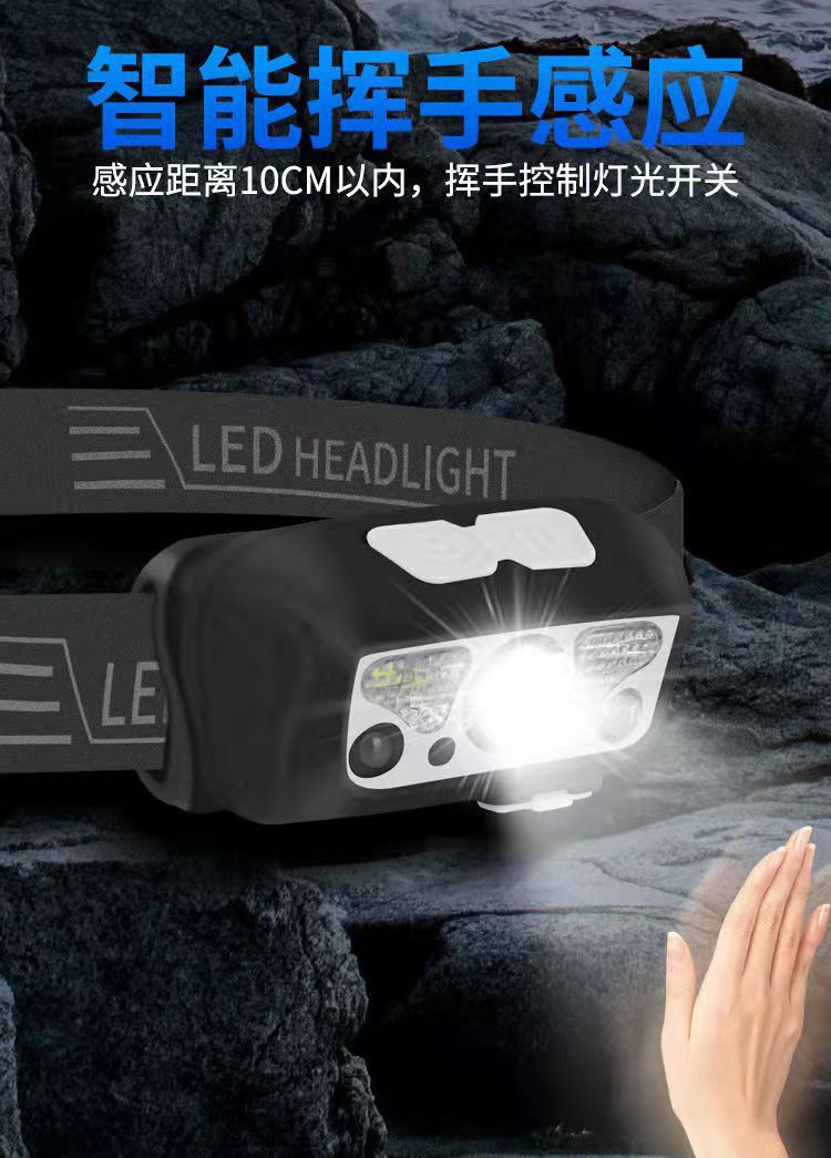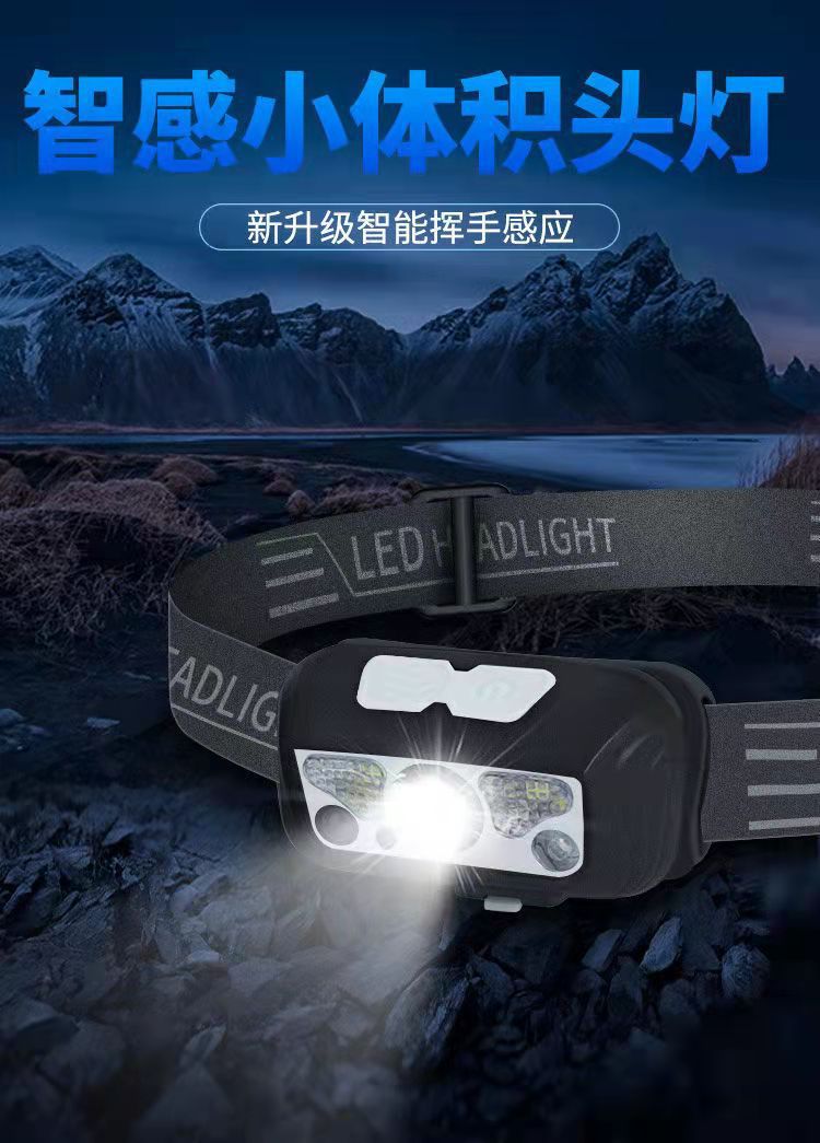 Cross-border led small headlamp, usb charging sensor night fishing lamp, portable strong light night running headlamp, outdoor miner's lamp