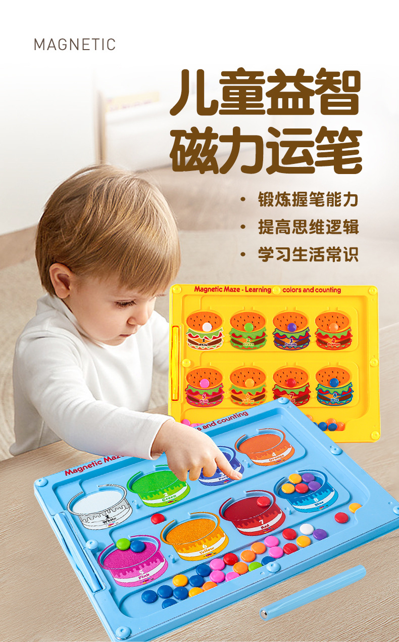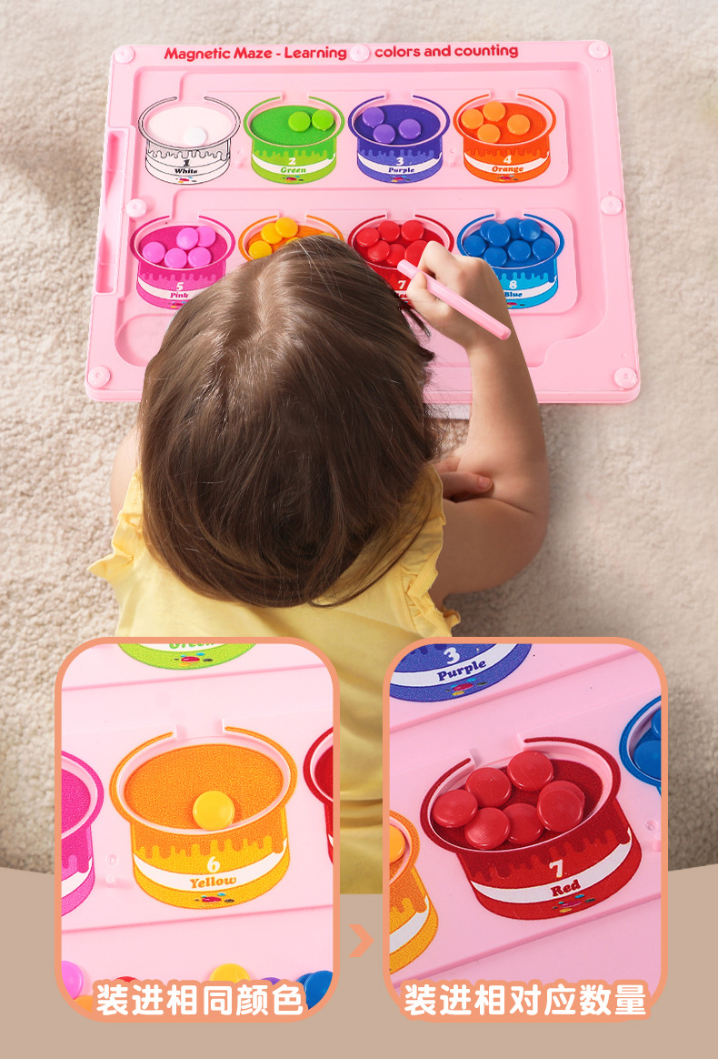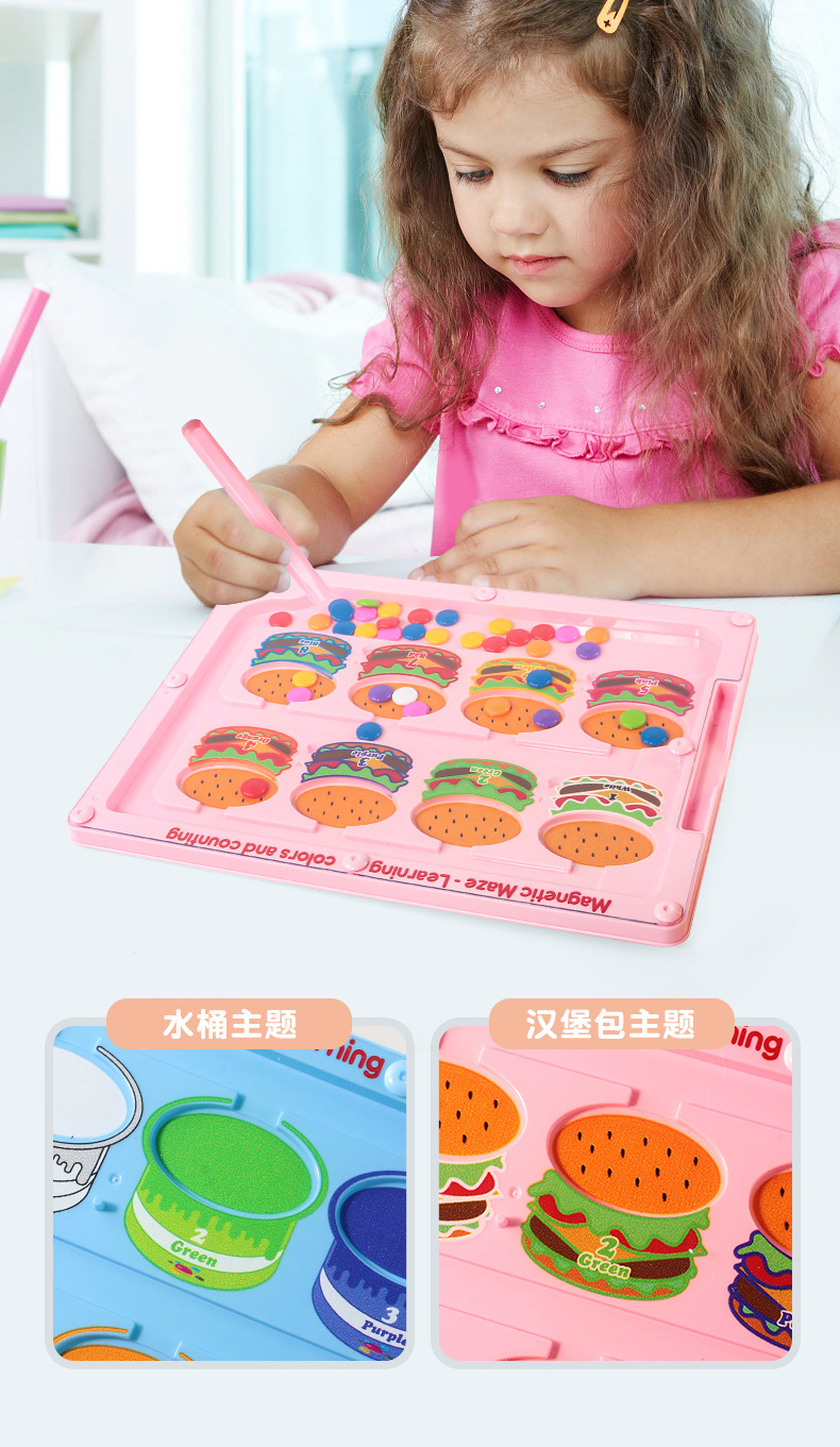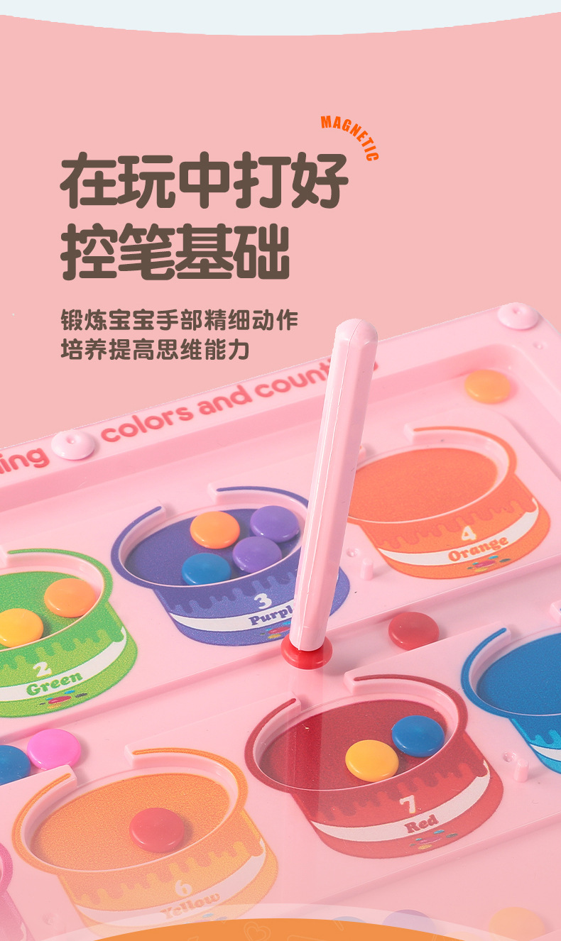 Cross-border magnetic pen movement drawing board, magnetic number walking bead maze, children's color classification and counting magnetic cognitive toy