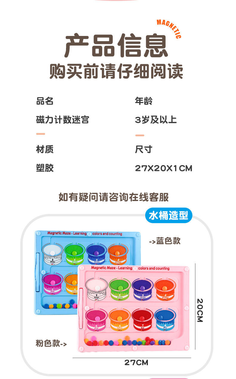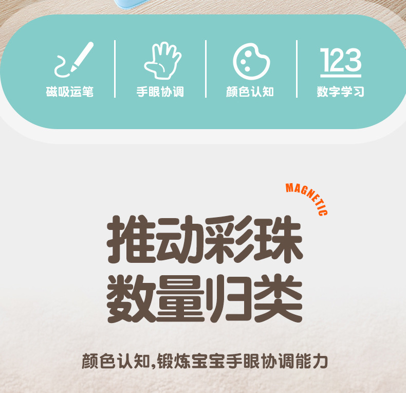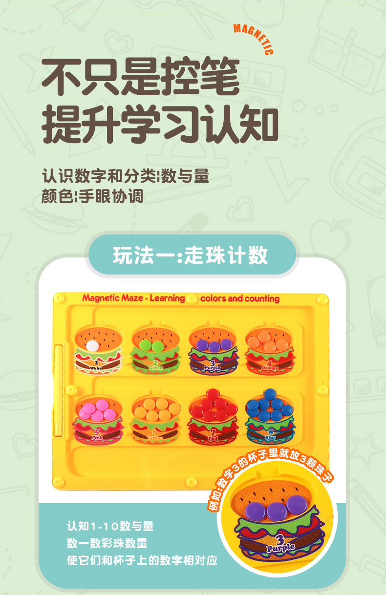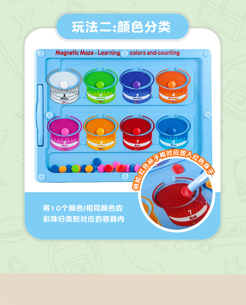 Cross-border magnetic pen movement drawing board, magnetic number walking bead maze, children's color classification and counting magnetic cognitive toy