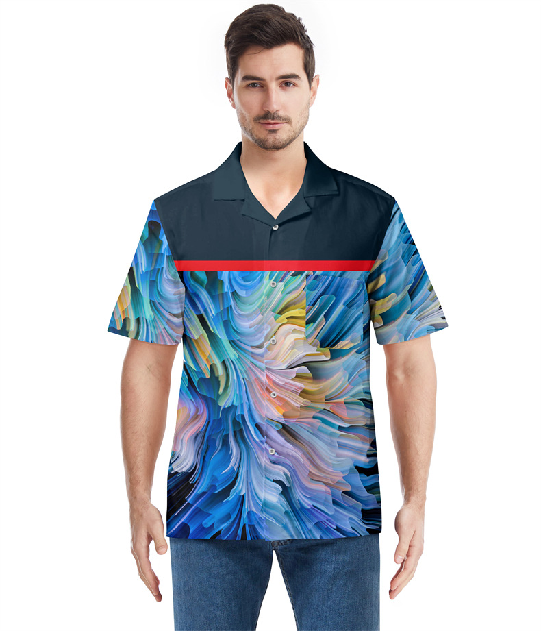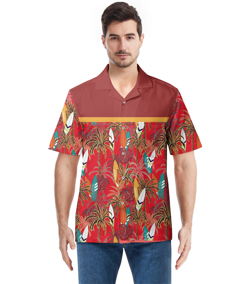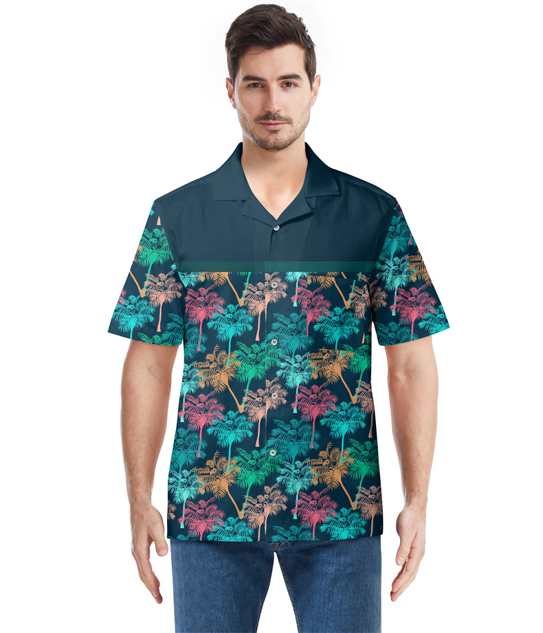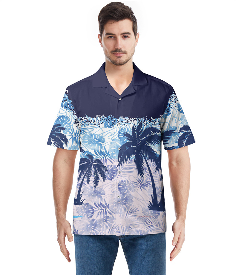 Cross-border men's Hawaiian shirts, European and American 3D printed foreign trade beach shirts, cardigans, short T-shirts, with designated patterns available