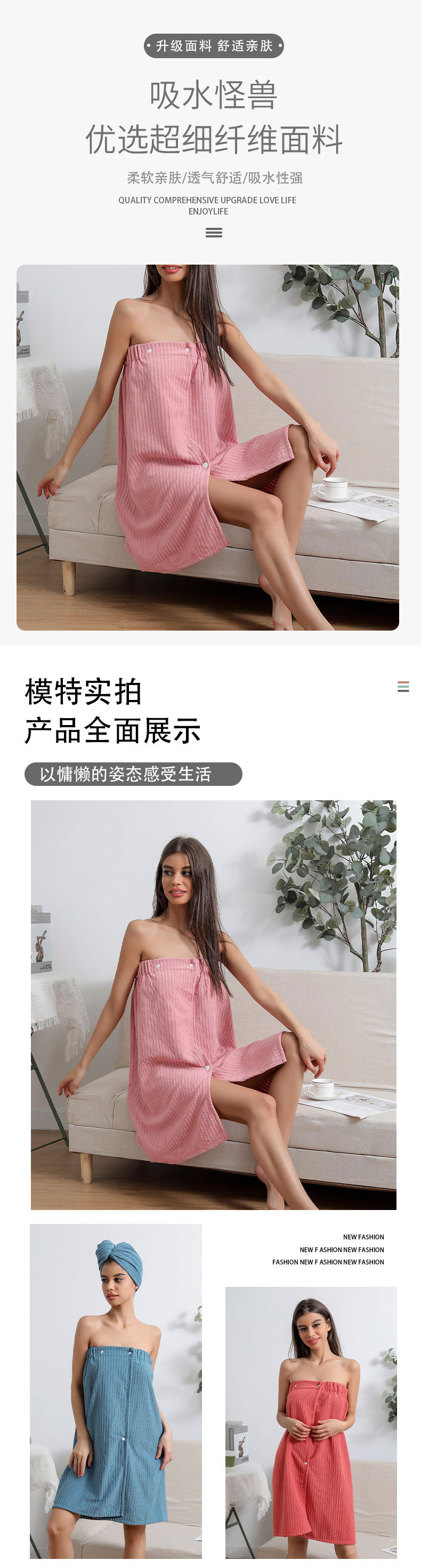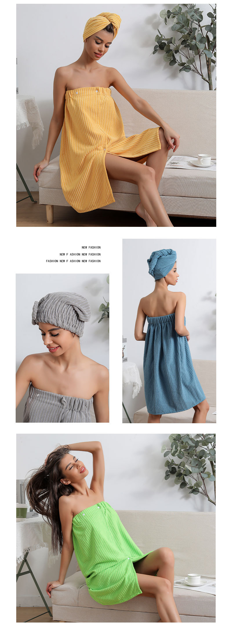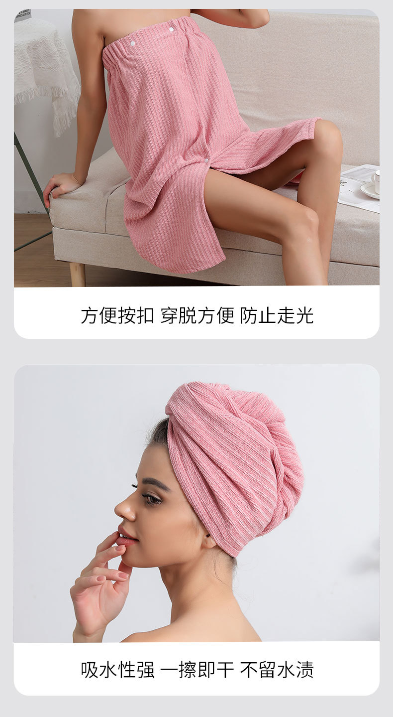 Cross-border microfiber bathrobe and shower cap set, women's absorbent quick-drying hair drying towel, hemmed dry hair cap, shower skirt