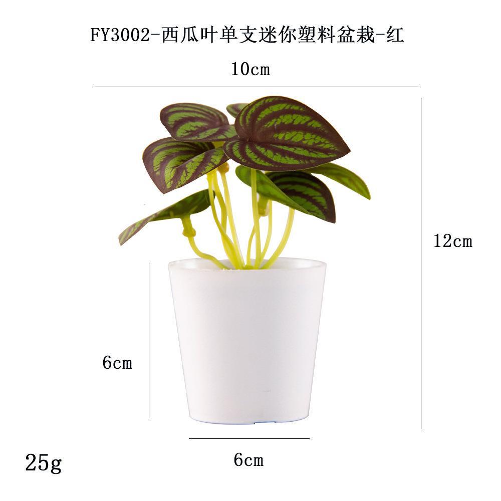 FY3002- Single mini plastic potted plant with red watermelon leaves