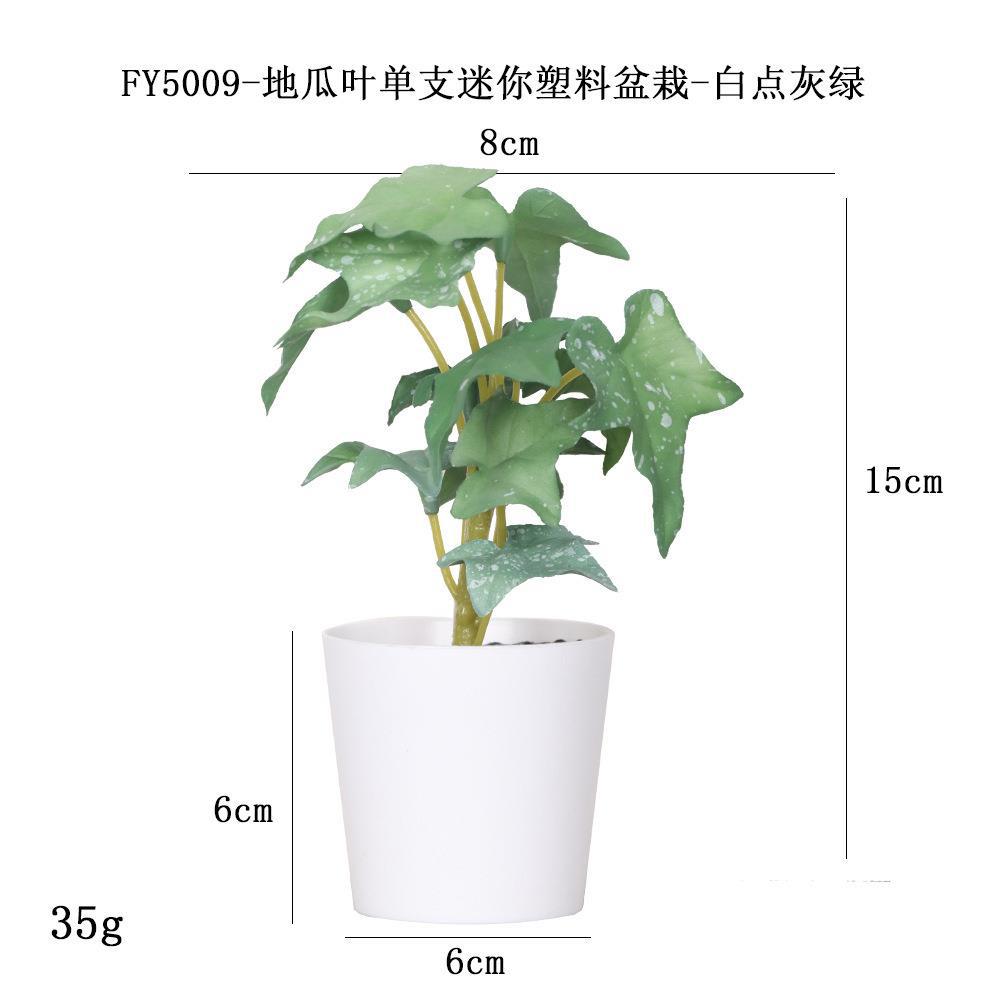 FY5009- White Dot Grey Green Space Melon Leaf Single Mini Plastic potted Plant