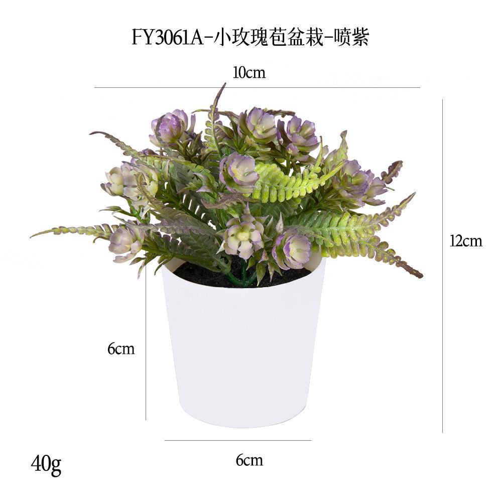 FY3061A- Mini Plastic potted plant with purple rose buds sprayed
