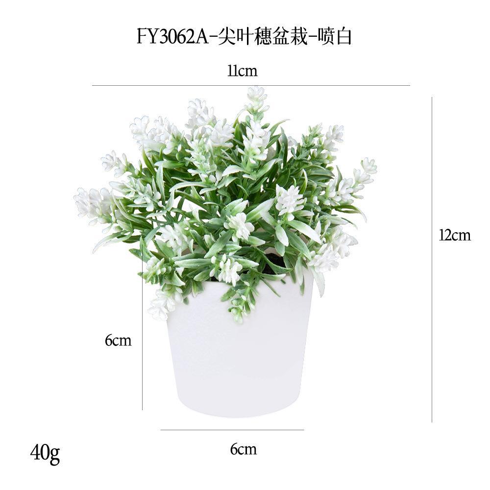 FY3062A- Mini Plastic potted Plant with White pointed leaf spikes