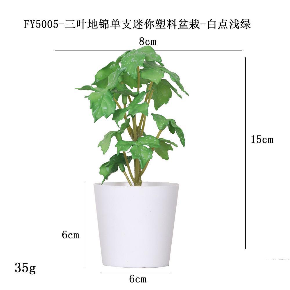 FY5005- Single mini plastic potted plant of white Dot light green three-leaf ground brocade
