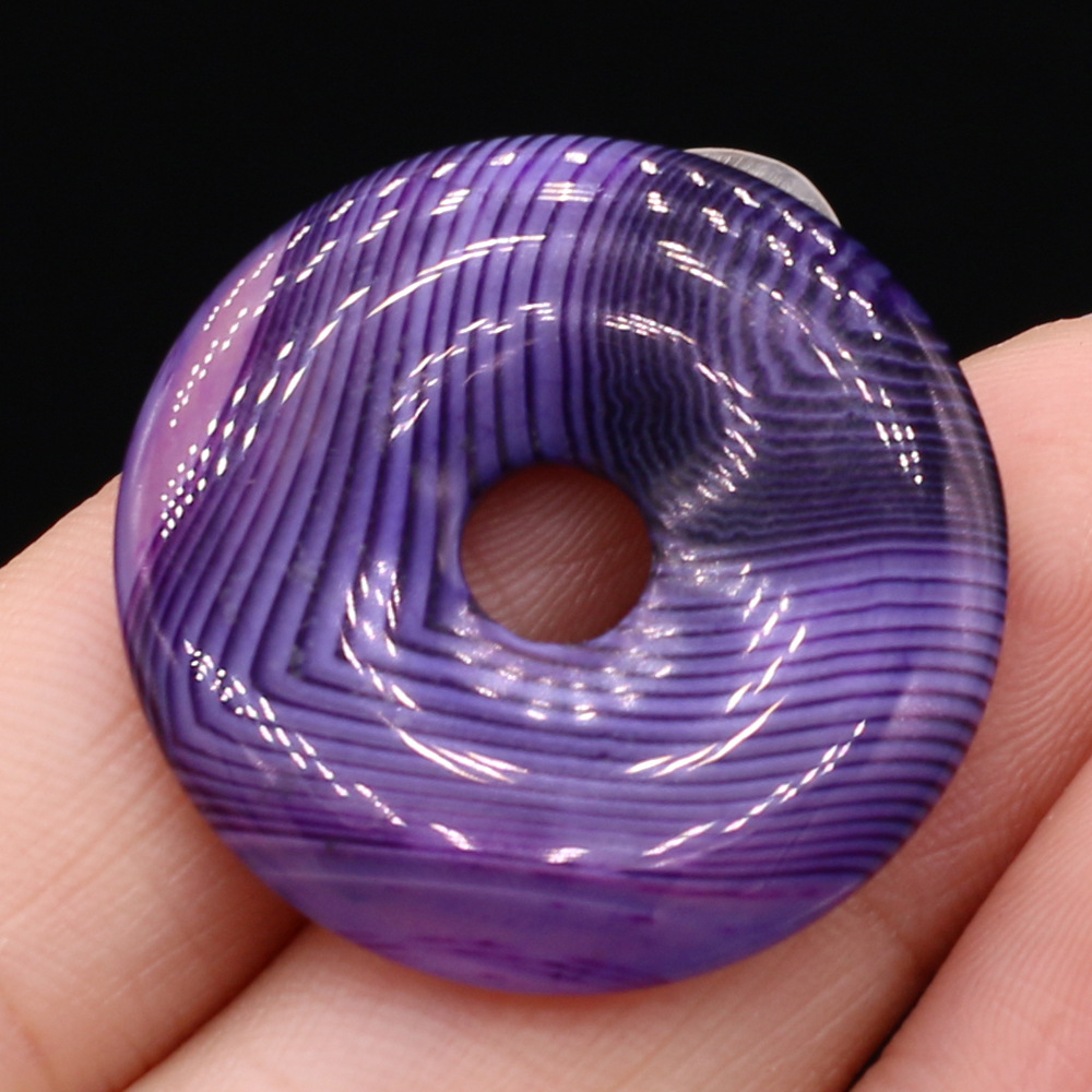 Cross-border natural semi-precious stone round large-pore pearl tiger's eye purple crystal small pendant accessory