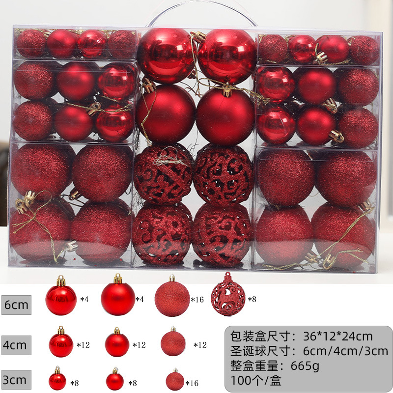 Cross-border new Christmas decoration Christmas balls 3-6cm set of 100 pieces Christmas tree decoration colorful ball hanging ornaments