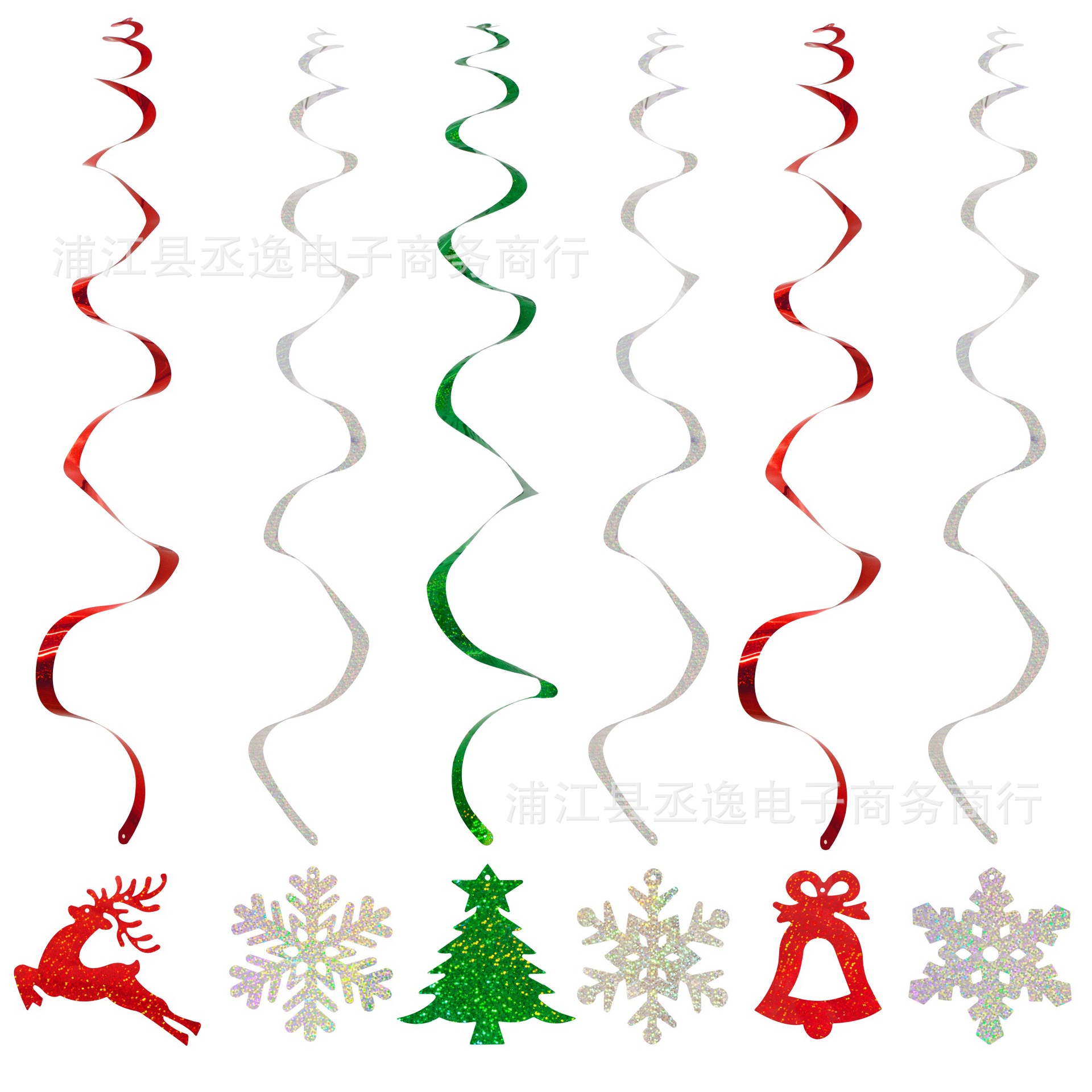 Cross-border new Christmas laser snowflake reindeer Christmas tree spiral hanging strips Party atmosphere decoration hanging ornaments