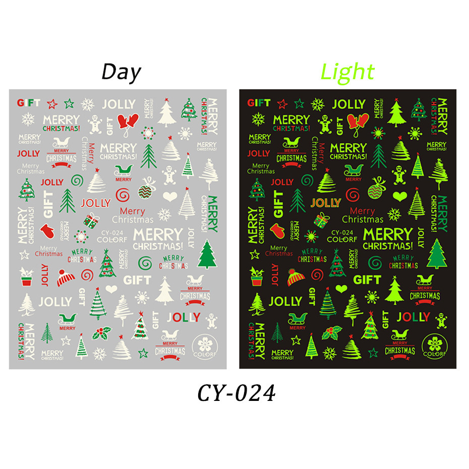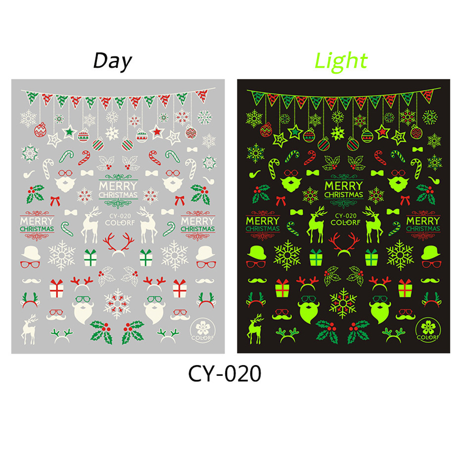Cross-border new nail stickers, ins luminous Santa Claus Reindeer Snowflake Christmas Tree Christmas back adhesive nail stickers
