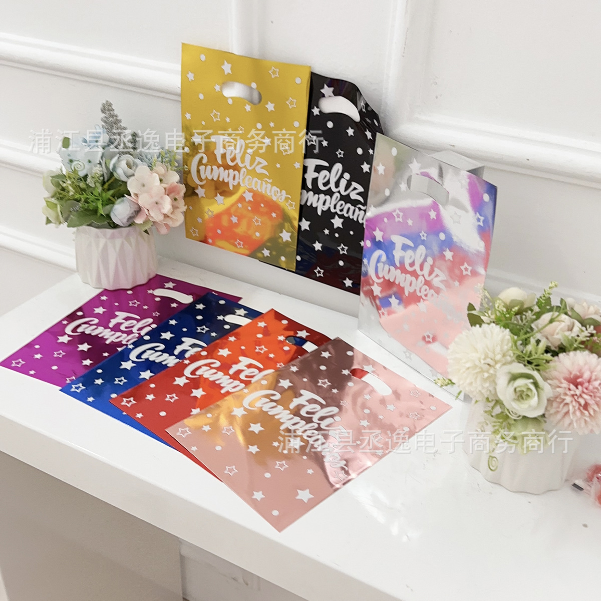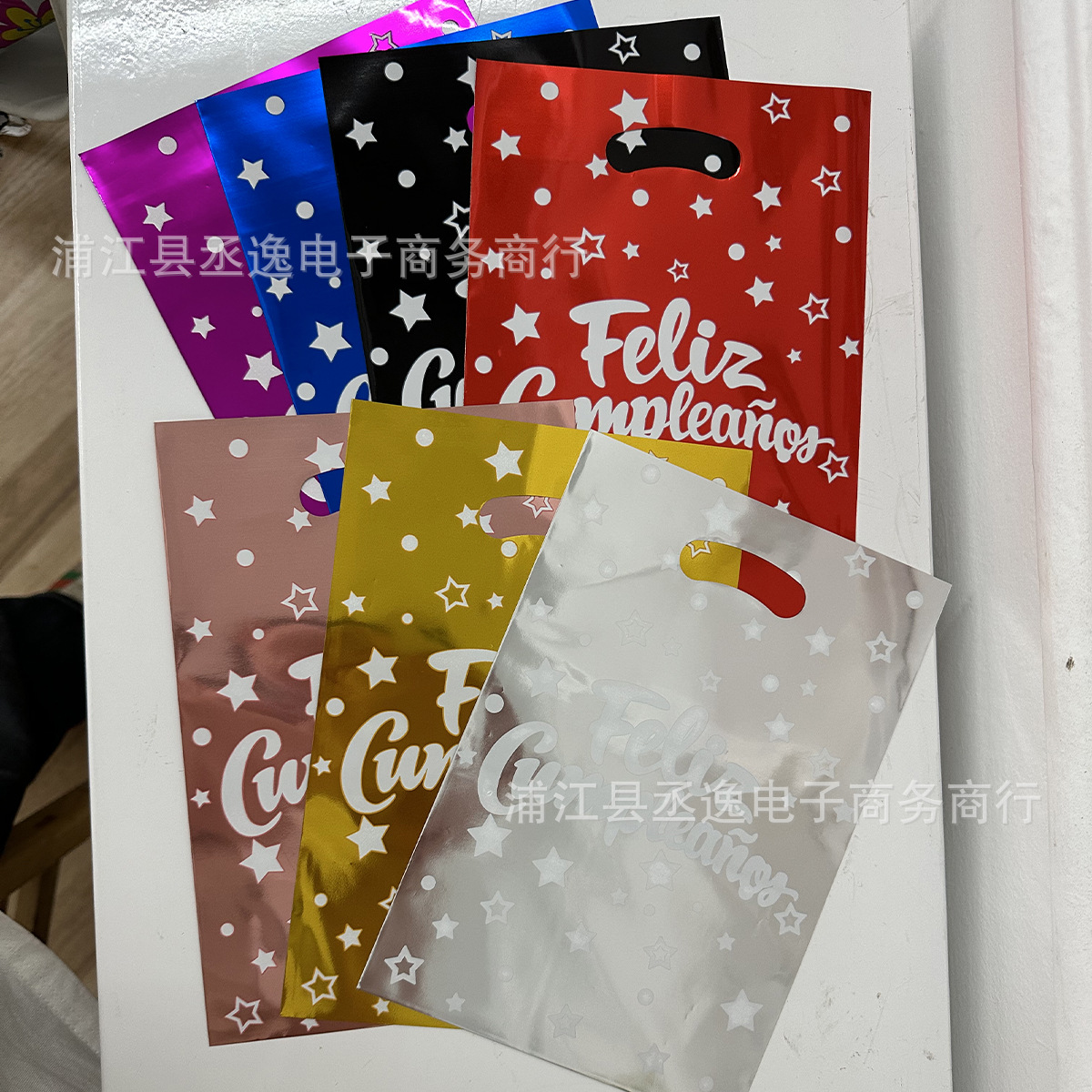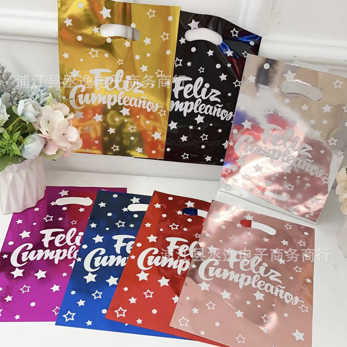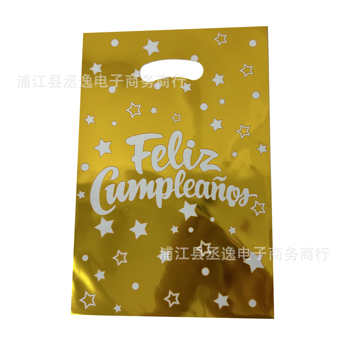 Cross-border new Spanish "Happy Birthday" mirror finish aluminum film gift bag, candy bag, birthday return gift bag