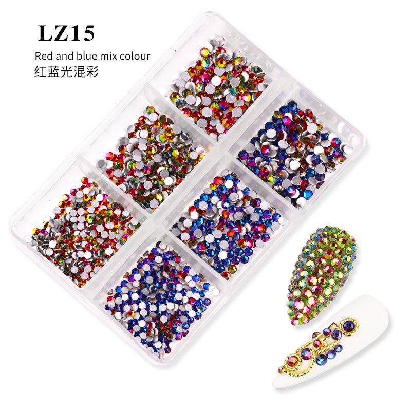 Cross-border new type of nail art flat-bottomed mixed color AB porcelain white champagne 6-grid nail accessory with diamond pasting diy nail accessory