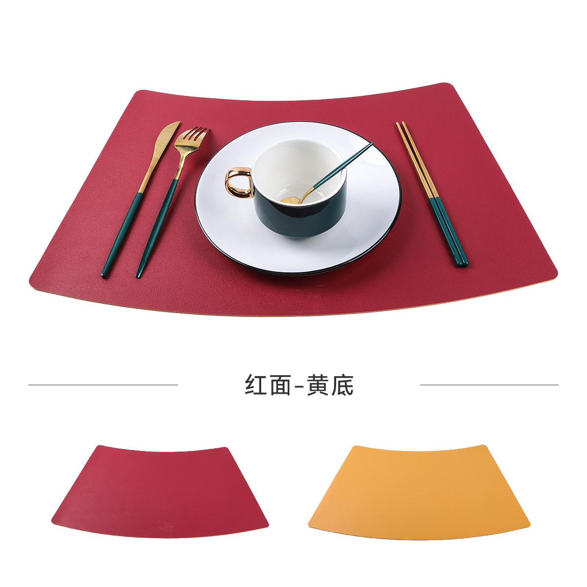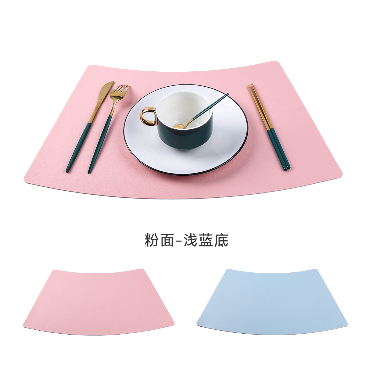 Cross-border Nordic-style fan-shaped two-color leather placemats, anti-slip and heat-insulating MATS, table MATS, waterproof and eco-friendly Western placemats