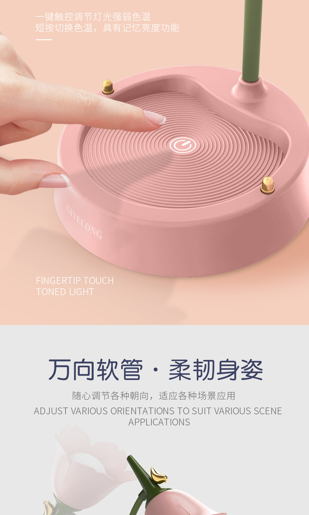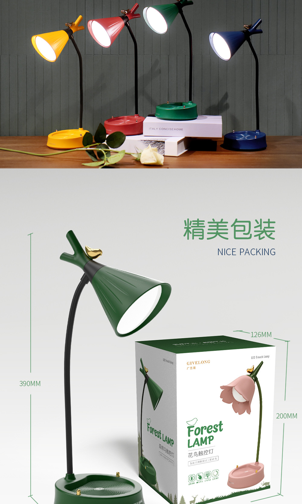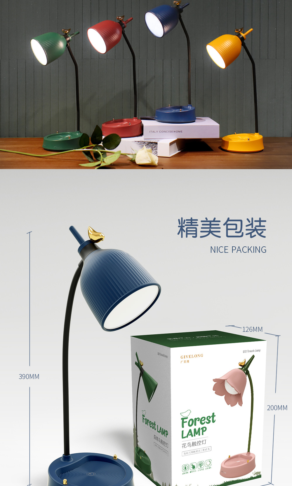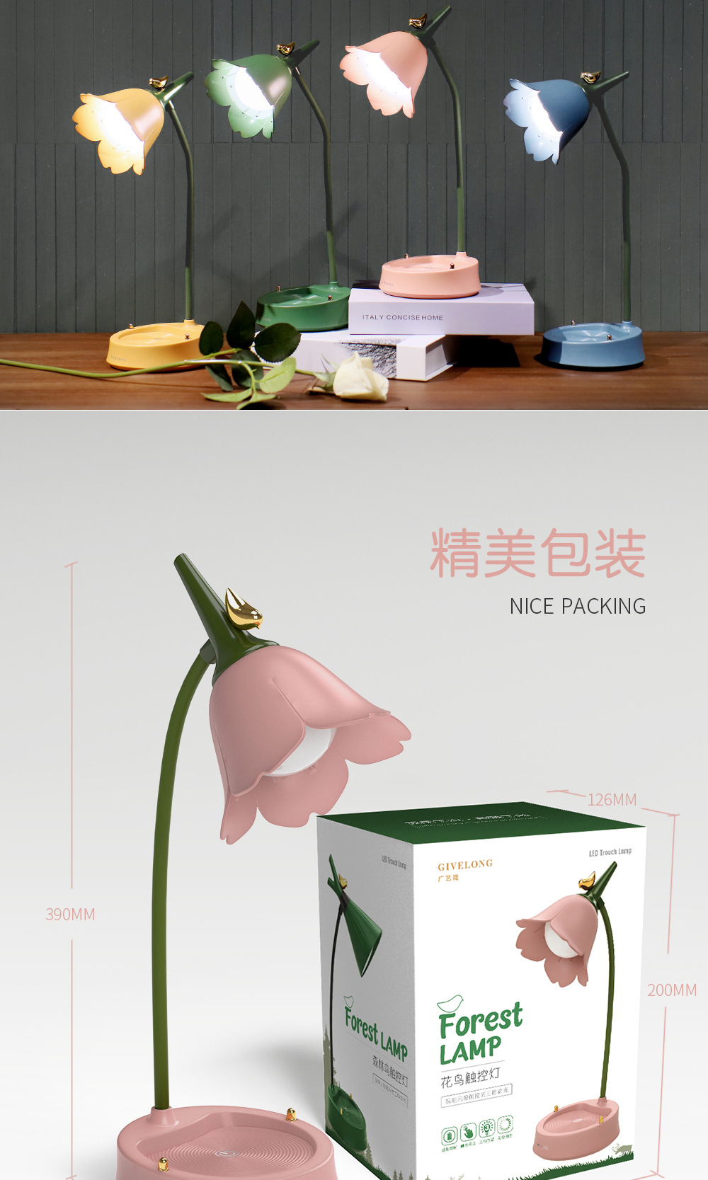 Cross-border Nordic-style flower-and-bird touch multi-functional LED desk lamp, children's eye-protecting, study, bedroom charging night light gift