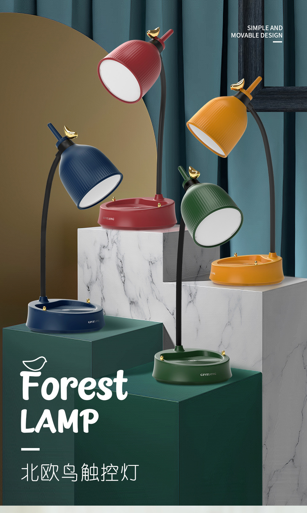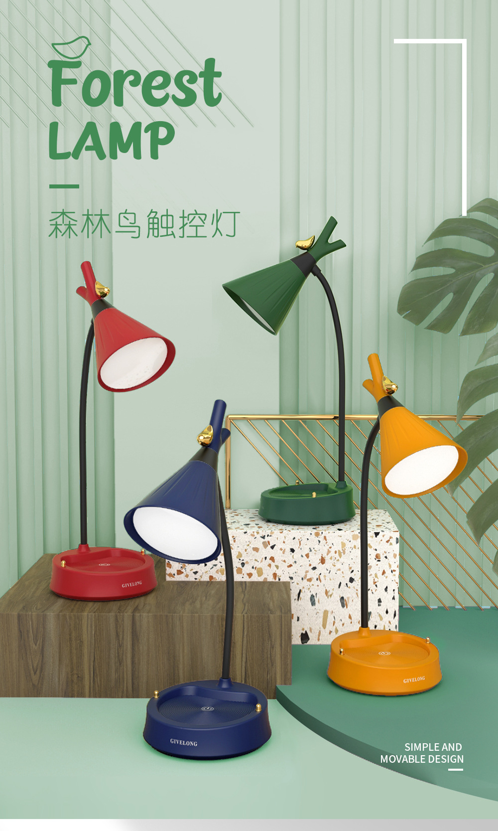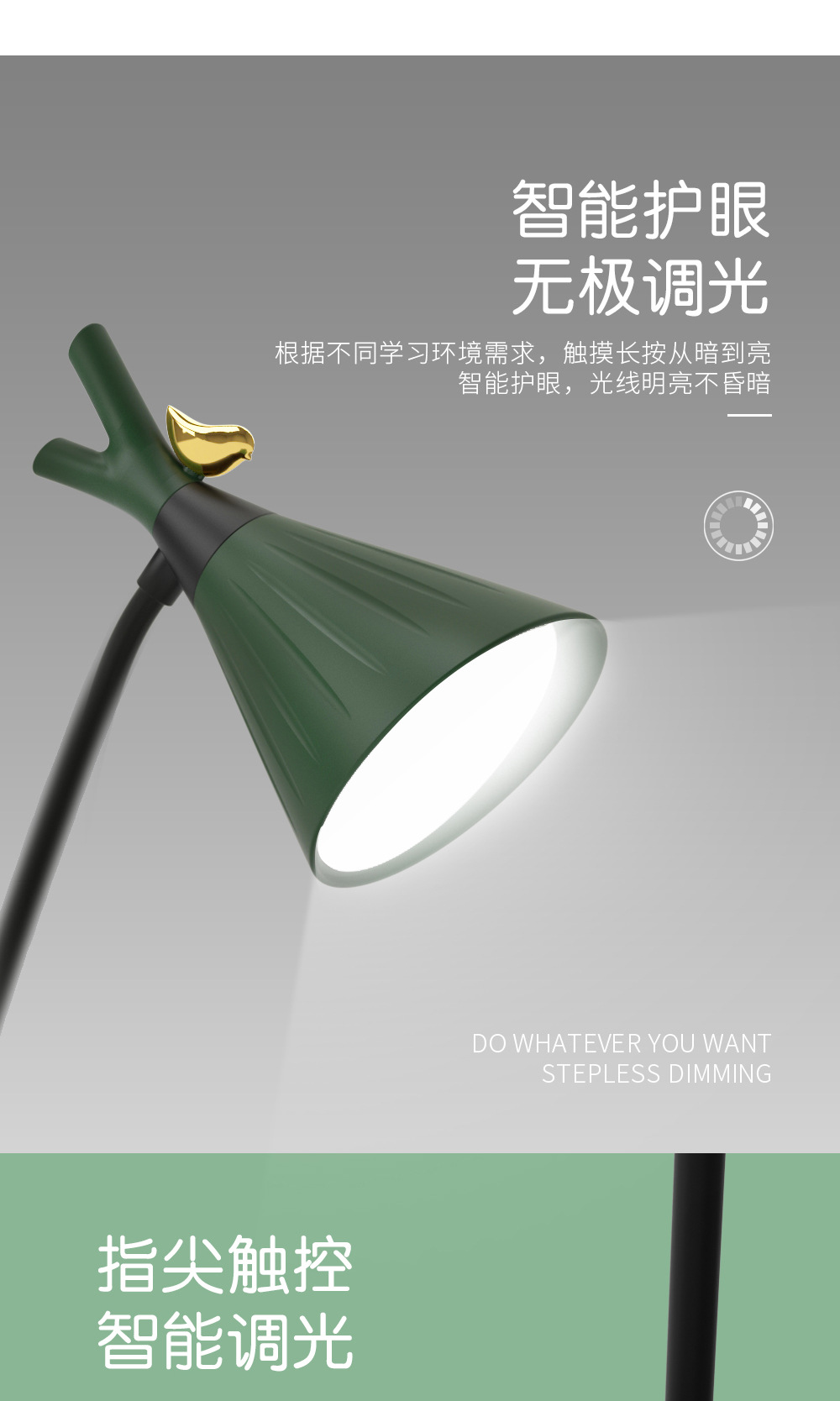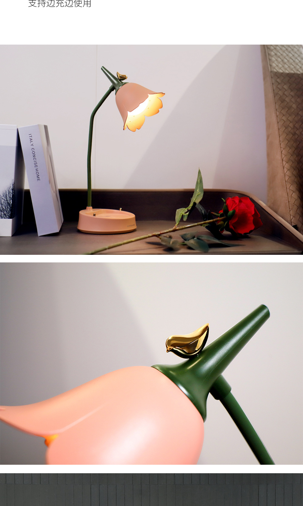 Cross-border Nordic-style flower-and-bird touch multi-functional LED desk lamp, children's eye-protecting, study, bedroom charging night light gift