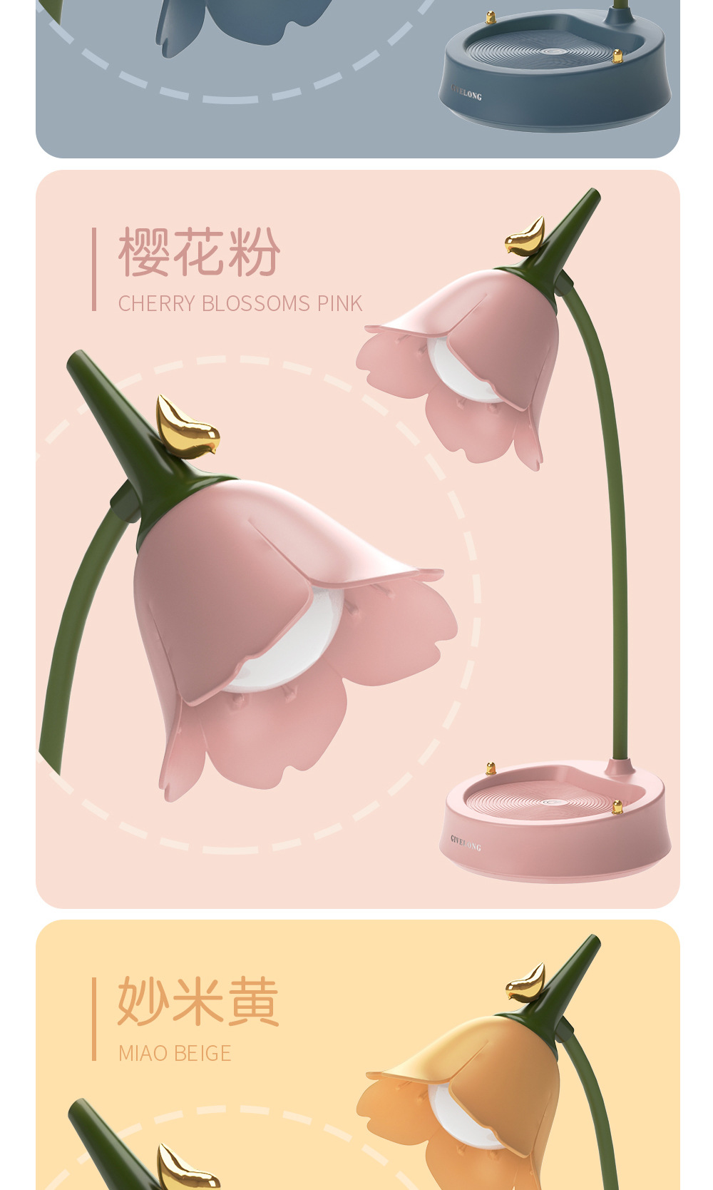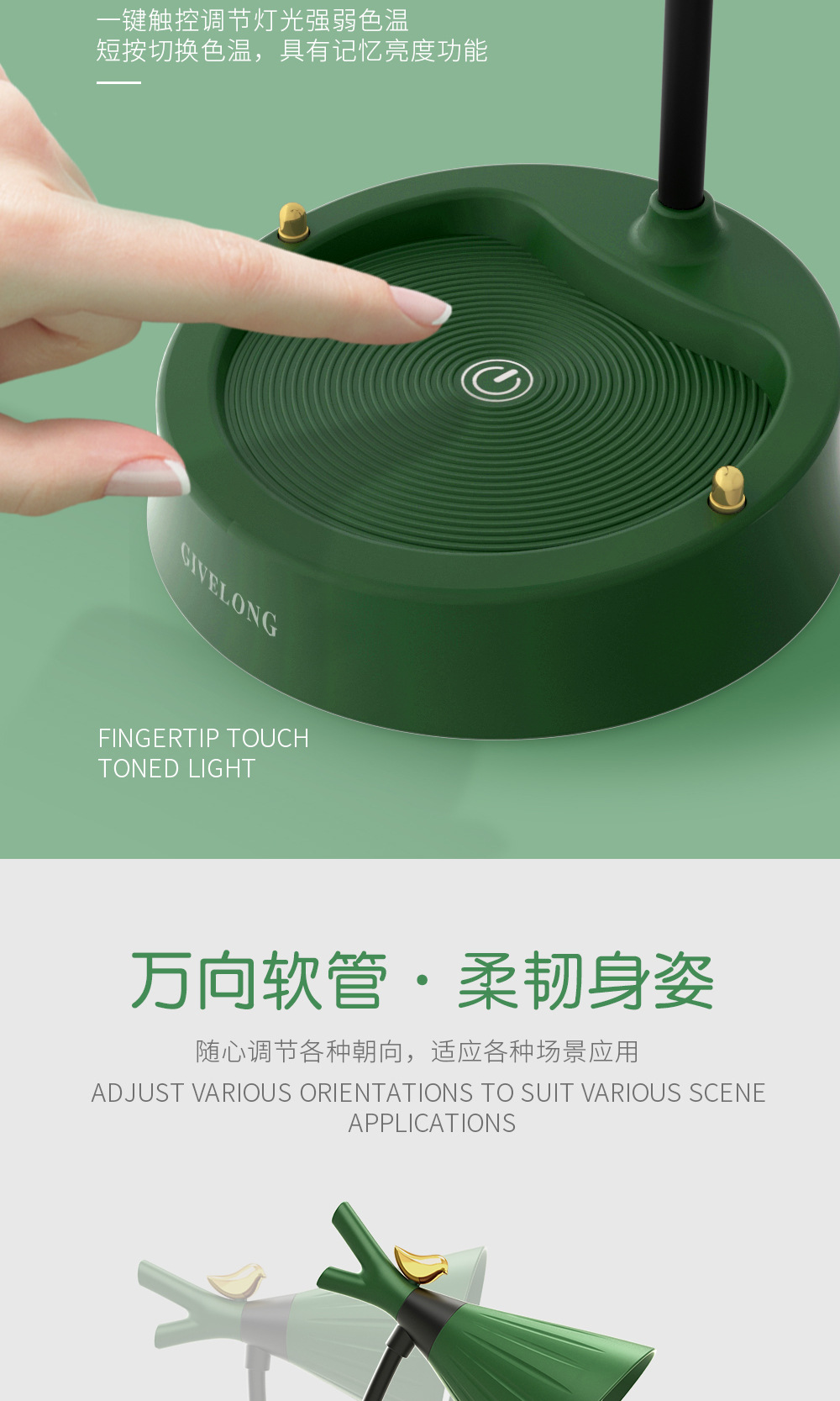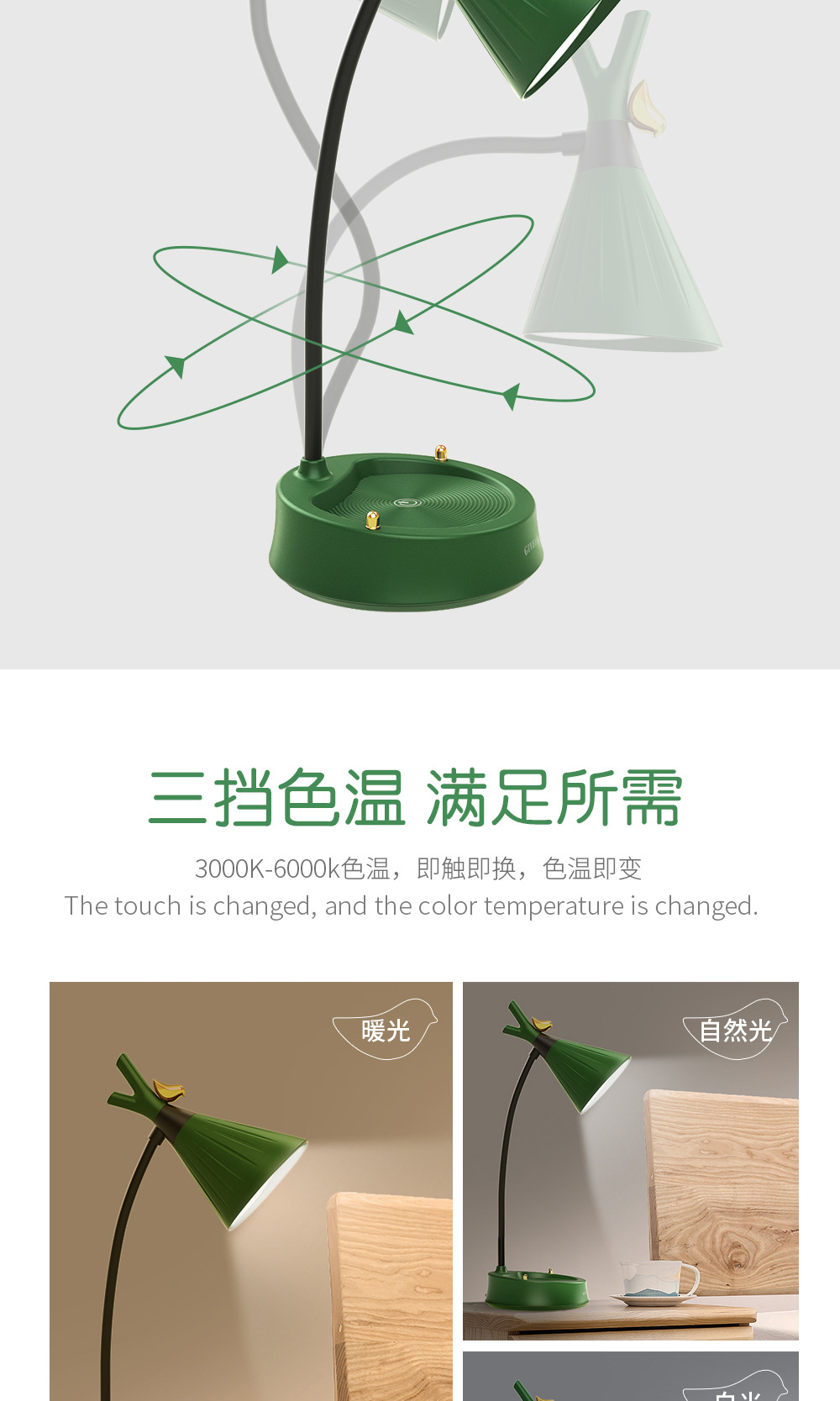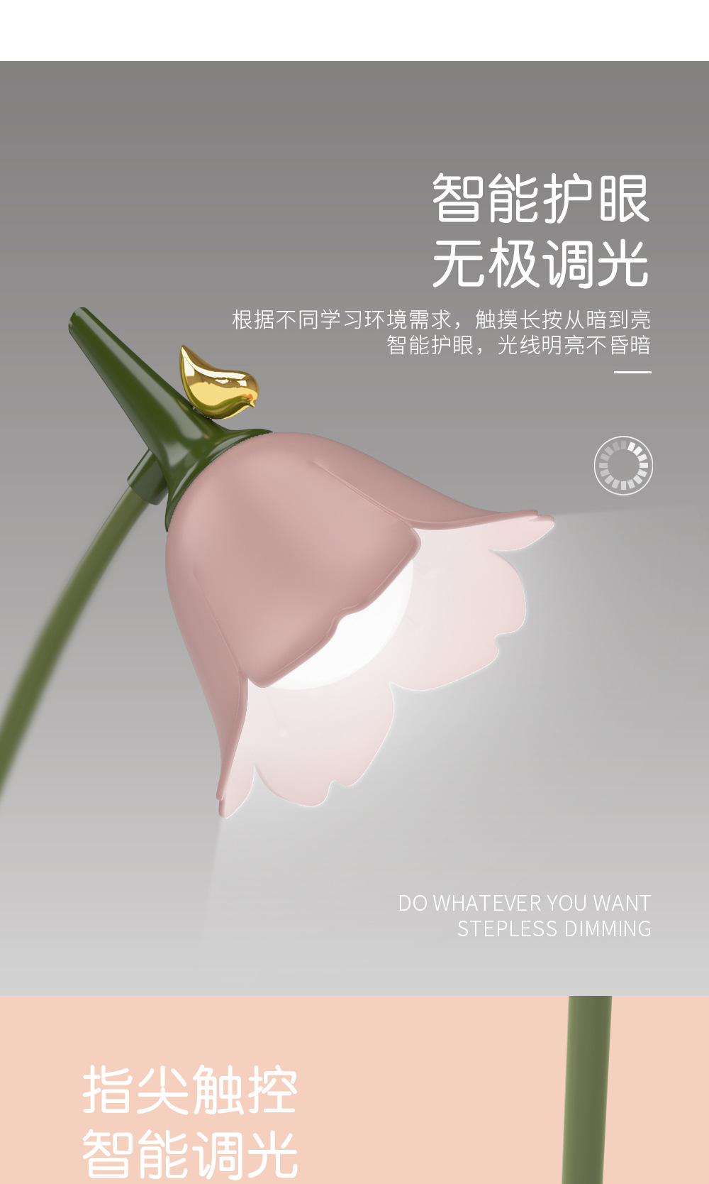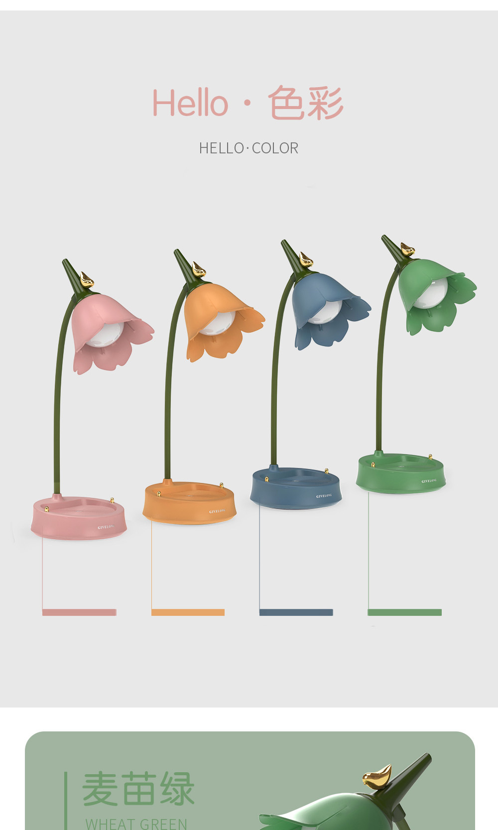 Cross-border Nordic-style flower-and-bird touch multi-functional LED desk lamp, children's eye-protecting, study, bedroom charging night light gift
