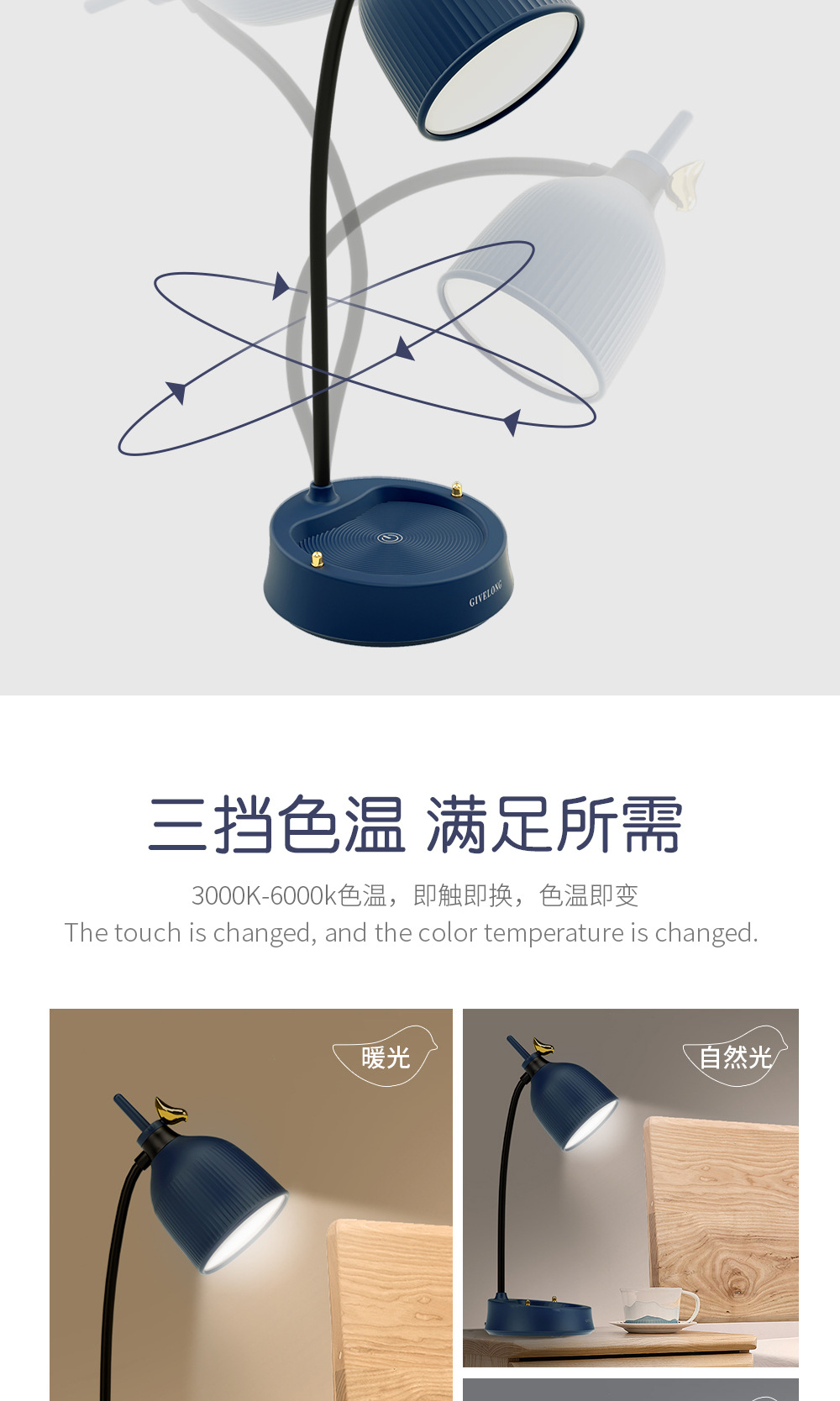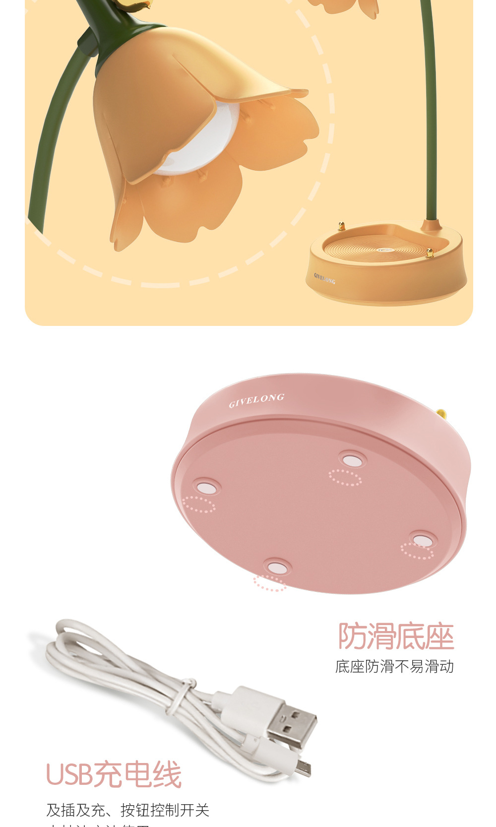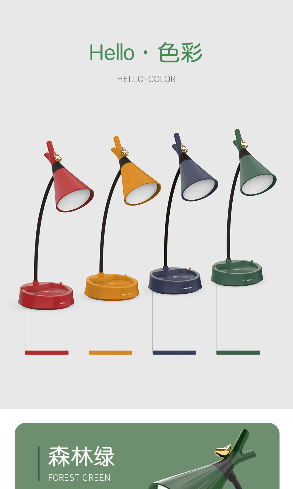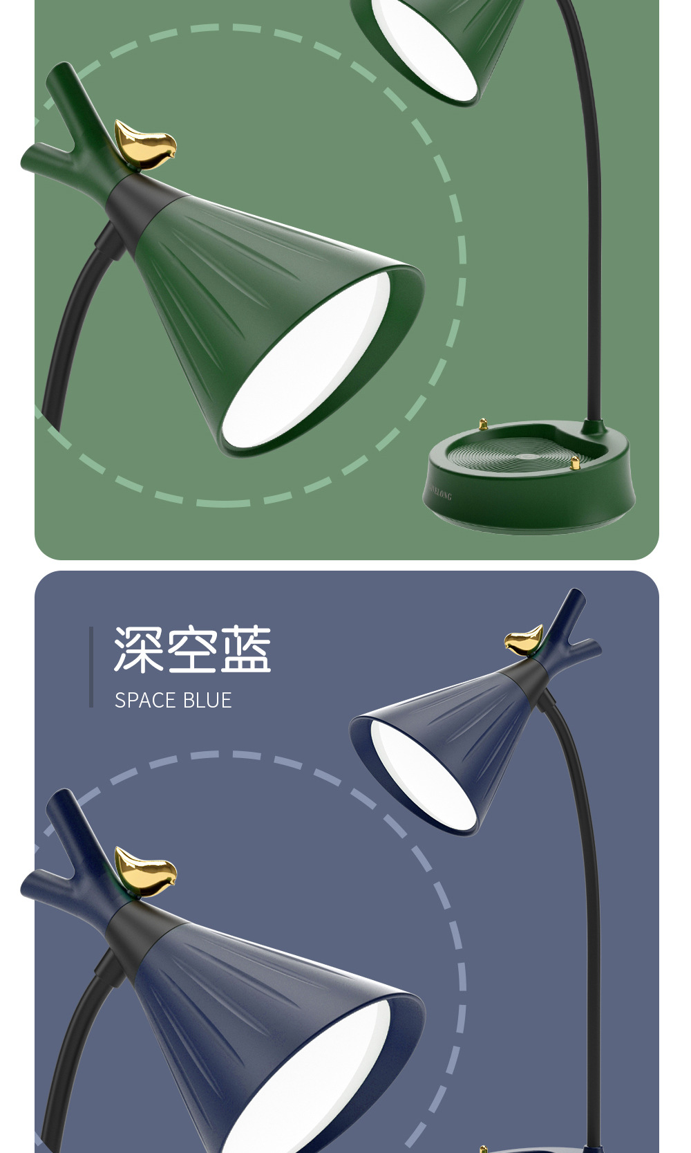 Cross-border Nordic-style flower-and-bird touch multi-functional LED desk lamp, children's eye-protecting, study, bedroom charging night light gift