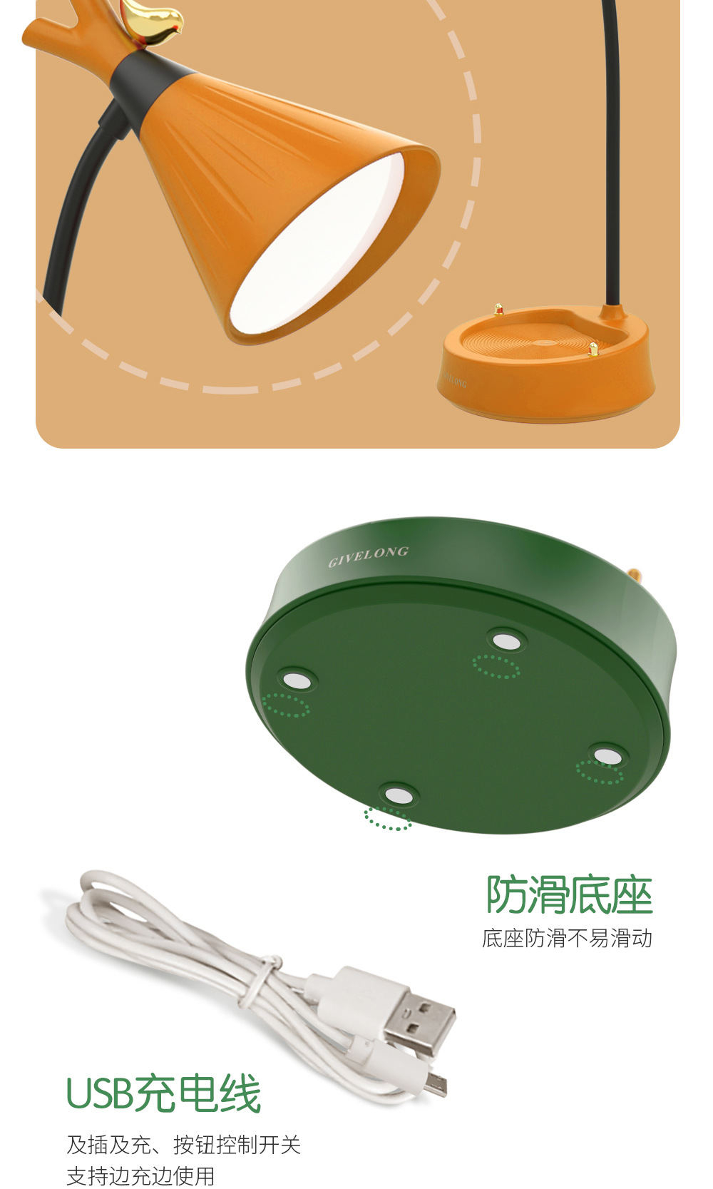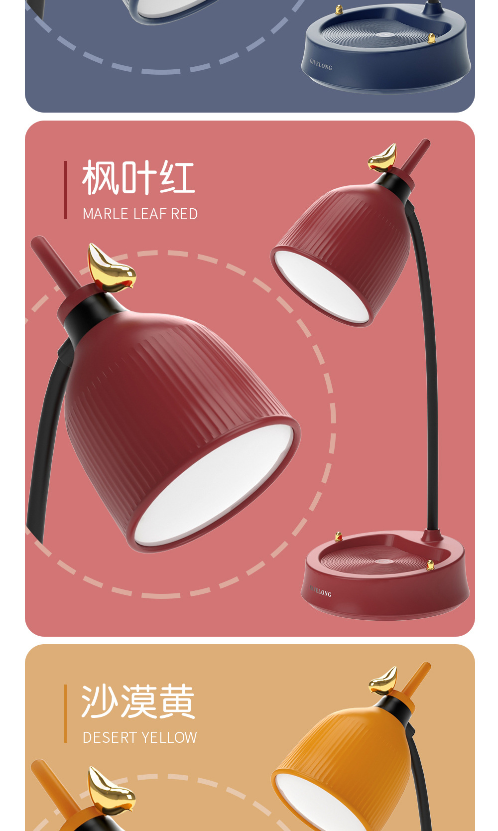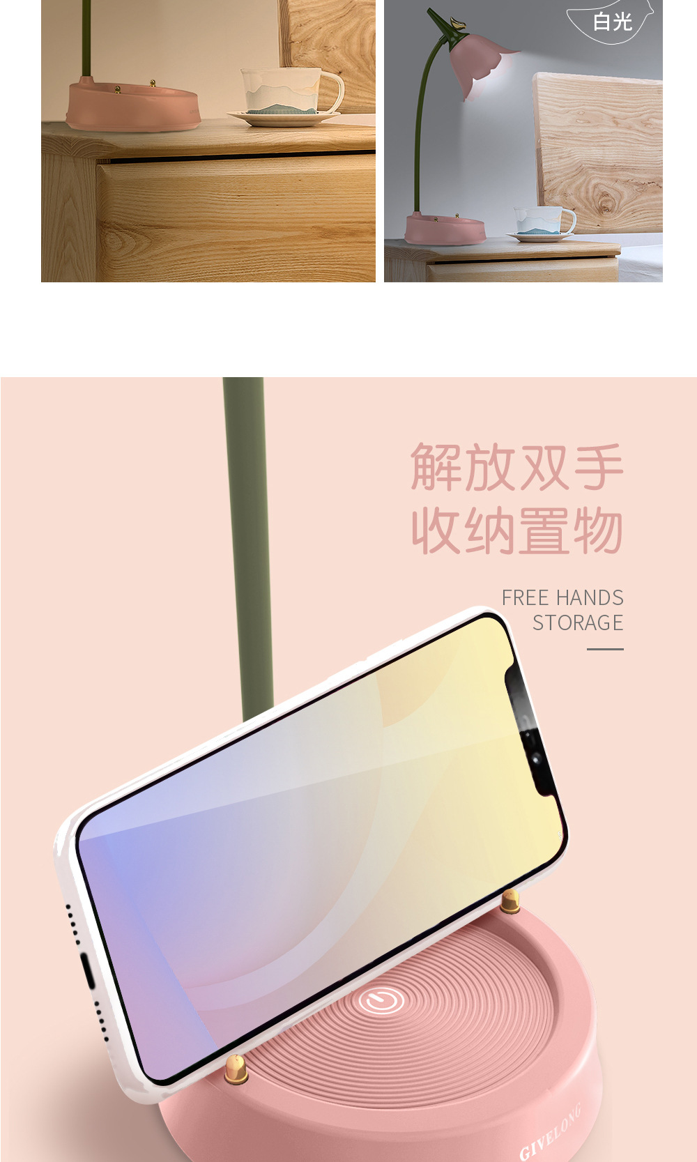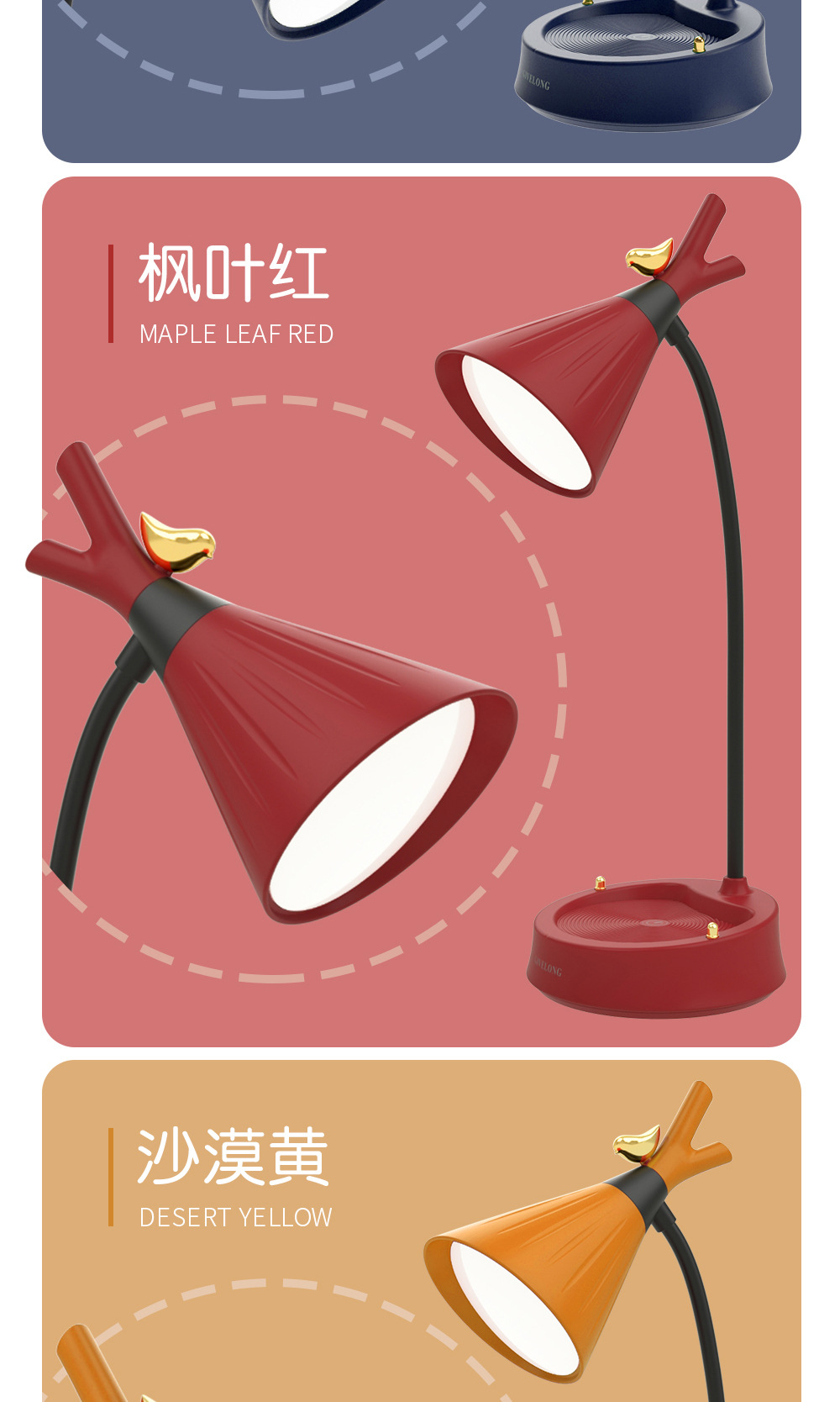 Cross-border Nordic-style flower-and-bird touch multi-functional LED desk lamp, children's eye-protecting, study, bedroom charging night light gift