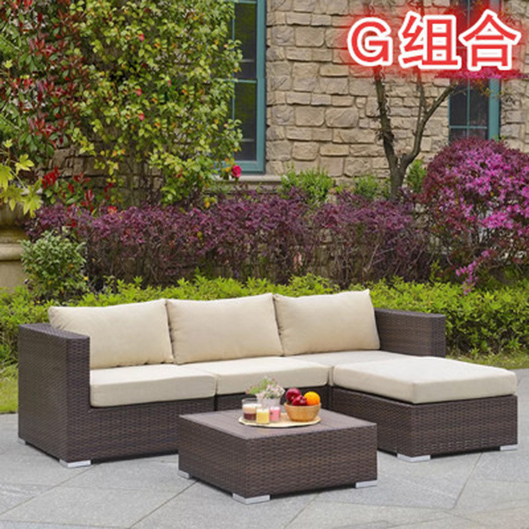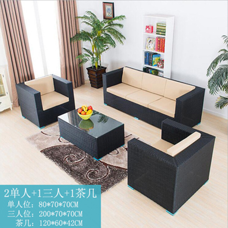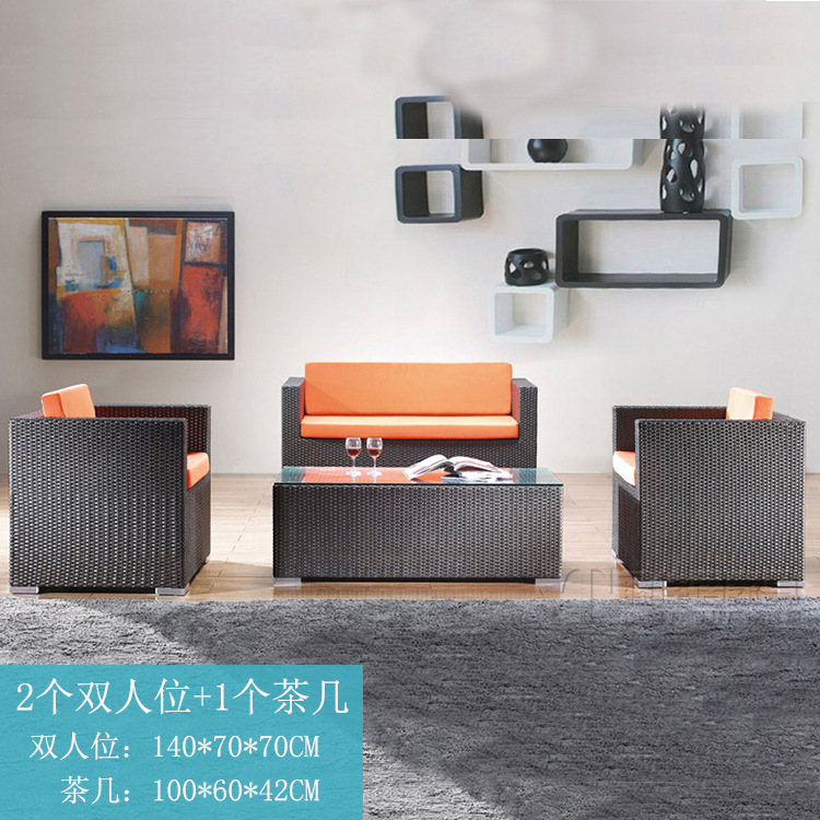 Cross-border outdoor rattan sofa courtyard set sun protection and waterproof leisure double rattan chair coffee table outdoor table furniture