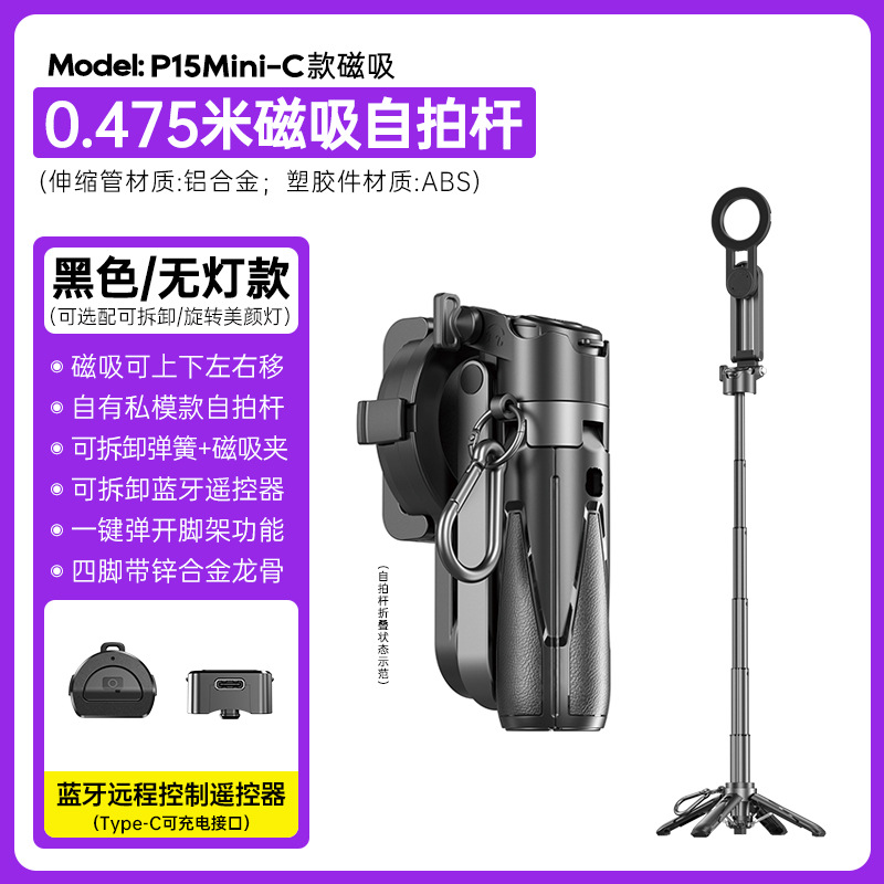 Cross-border P15C magnetic selfie stick, anti-shake and retractable mini mobile phone selfie stick, portable travel photo stand