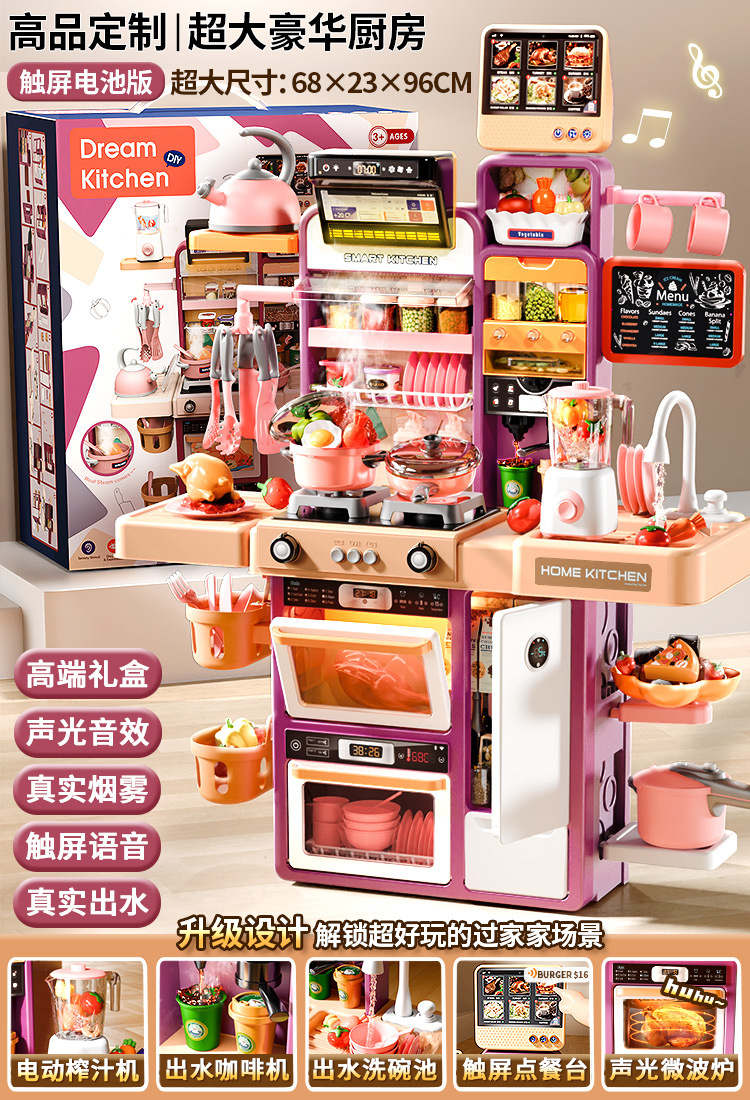 Cross-border Play House Children's simulation kitchen tableware set, 93cm, girls' toy, educational and educational multi-functional game table, birthday gift