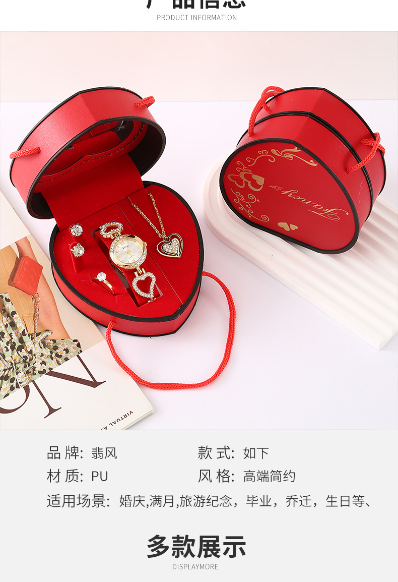 Cross-border Qixi Festival Ladies' gift set: Watch, necklace, stud ring, heart-shaped gift box, Teachers' Day gift set