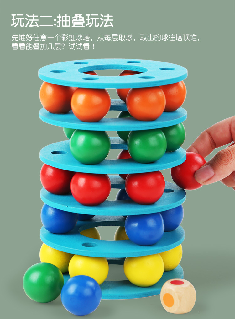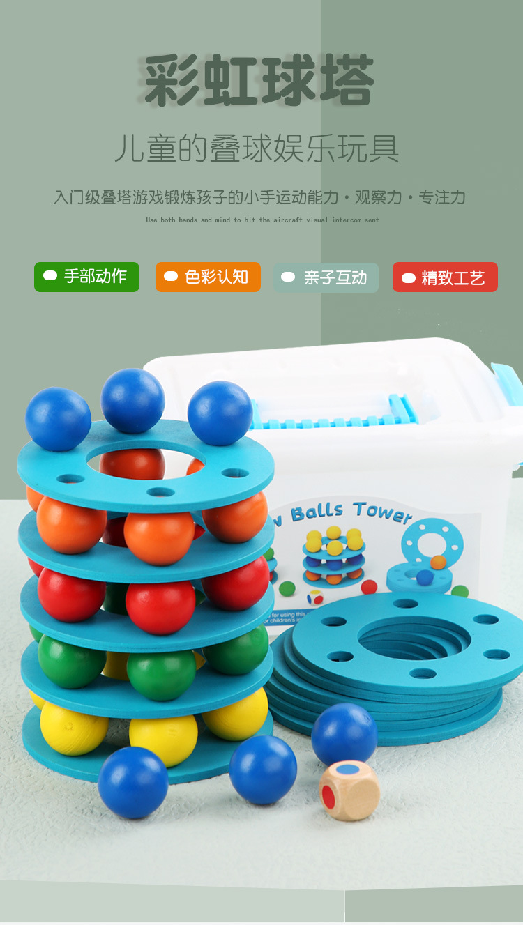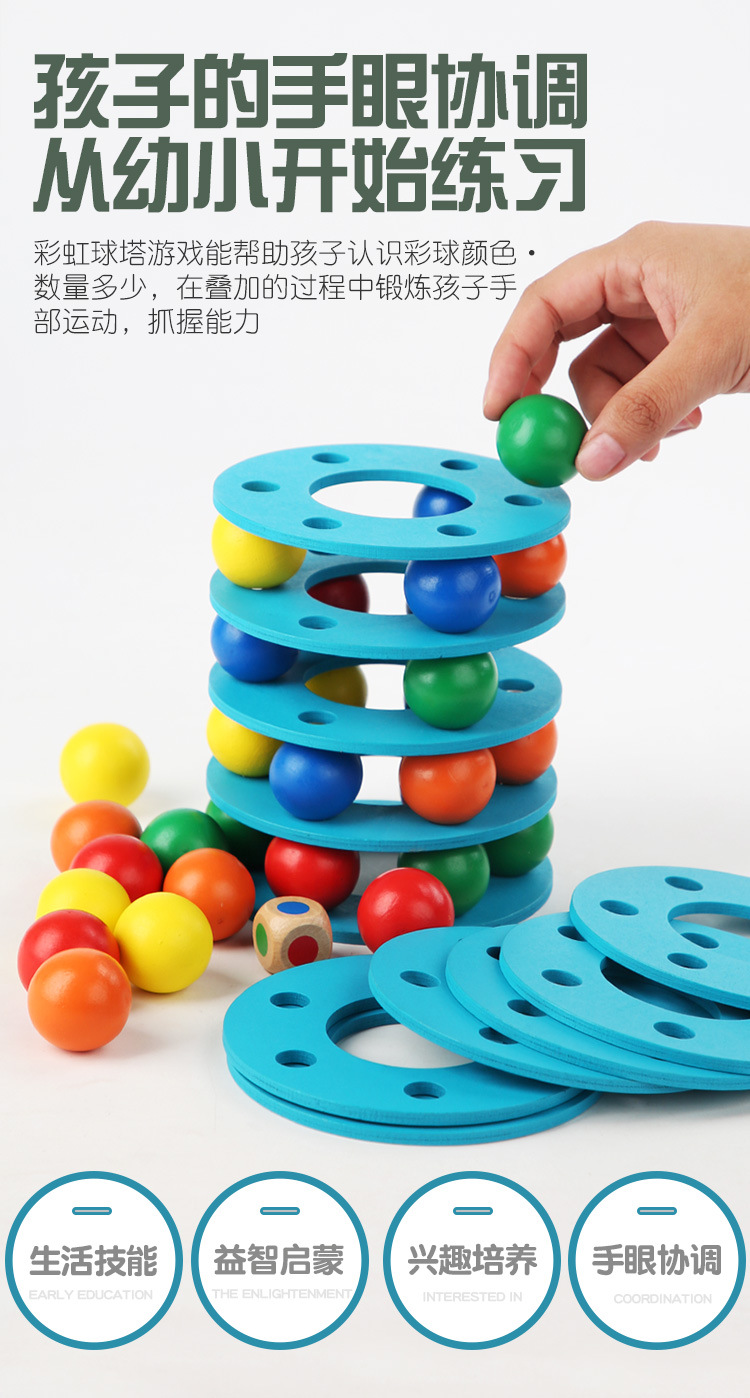 Cross-border Rainbow Ball Tower entry-level tower building game, a wooden early education toy that exercises children's hand movement concentration