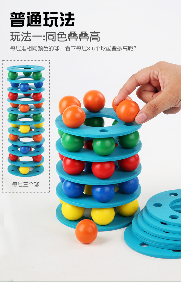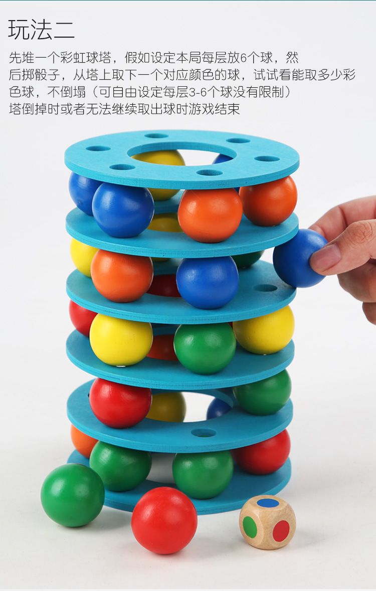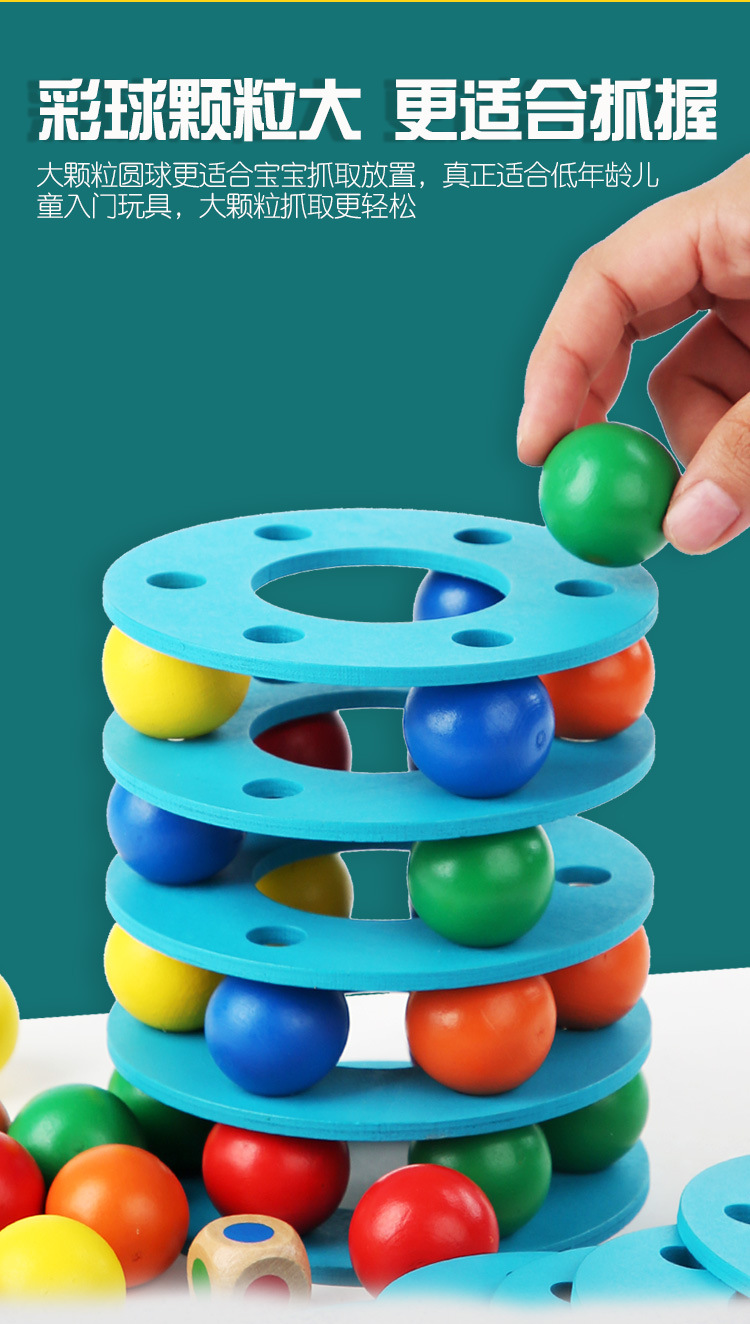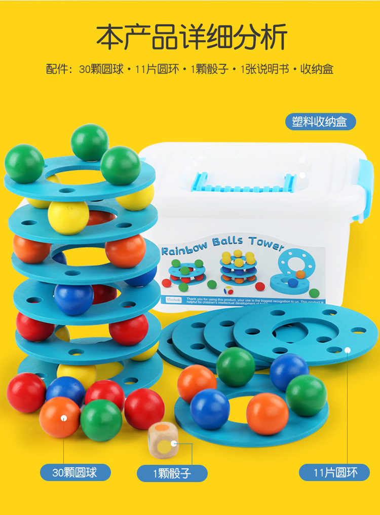 Cross-border Rainbow Ball Tower entry-level tower building game, a wooden early education toy that exercises children's hand movement concentration