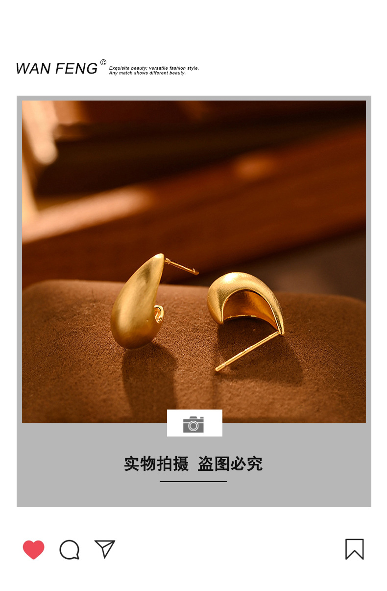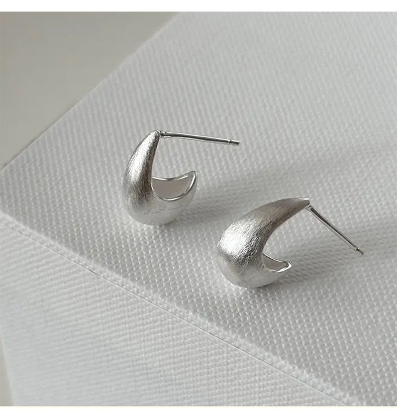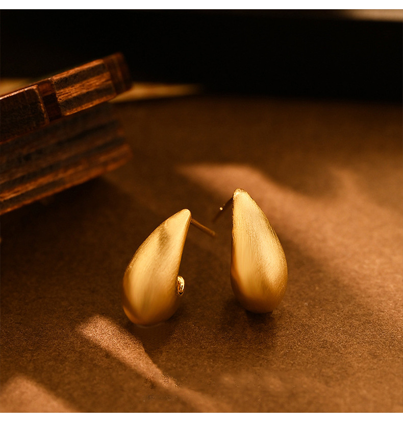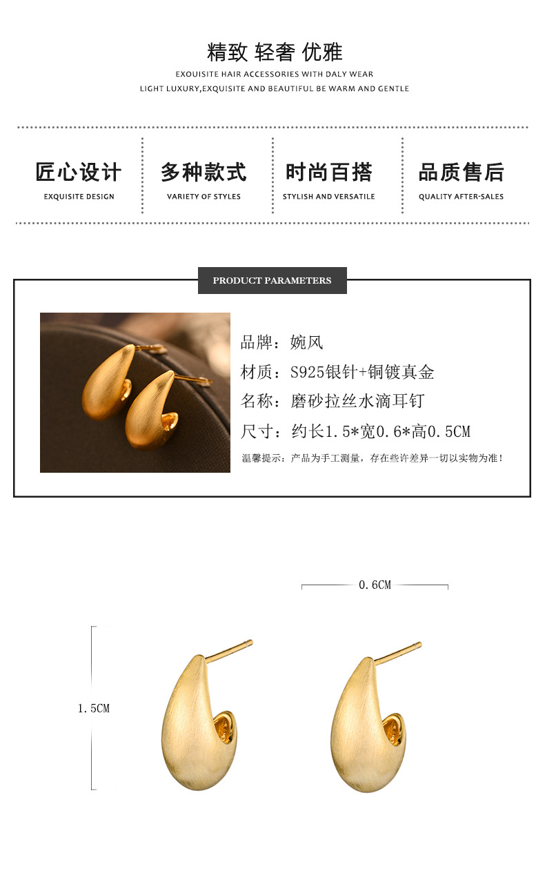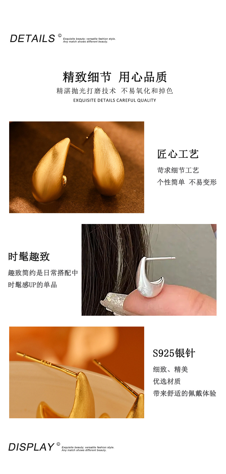 Cross-border s925 silver needle, simple and cold style, frosted brushed, teardrop stud earrings, high-end women's earrings, European and American style earrings