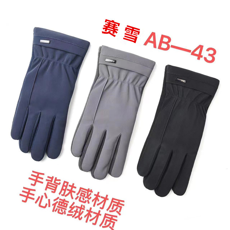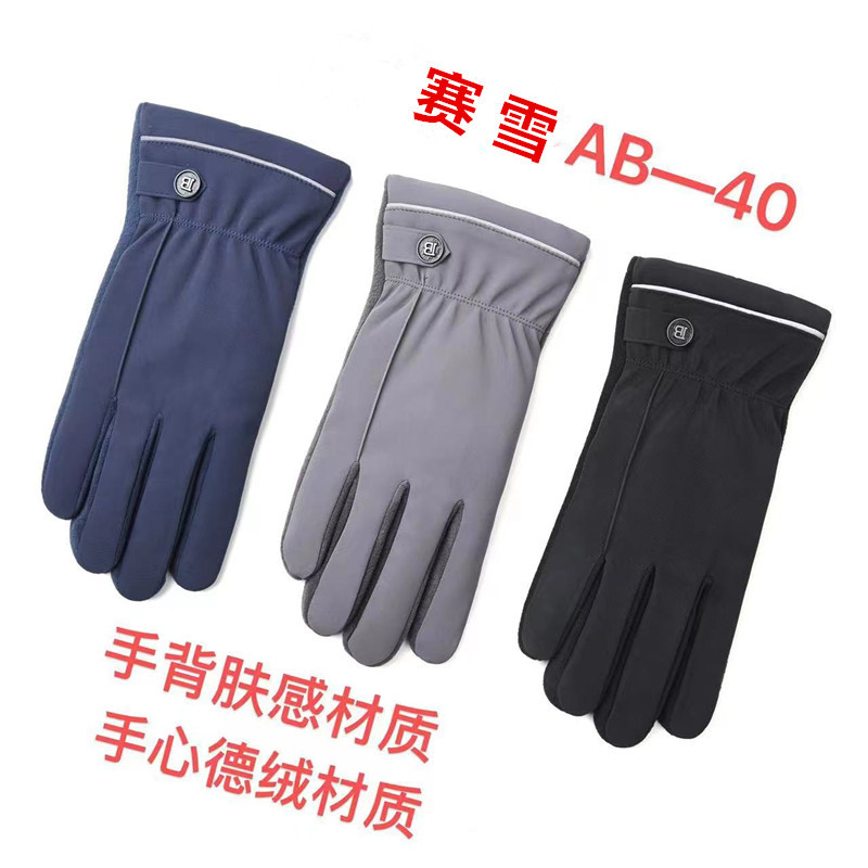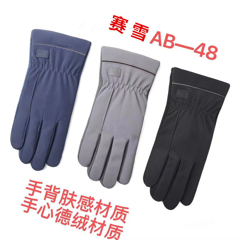 Cross-border safety hand protection universal gloves, outdoor cycling cold-proof and warm gloves, fashionable men's fleece skin-feel five-finger touch screen gloves, windproof cotton gloves